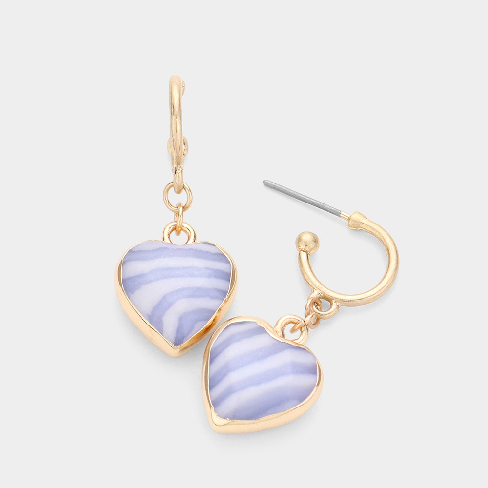Heart Accented Bubble Stone Dangle Evening Earrings