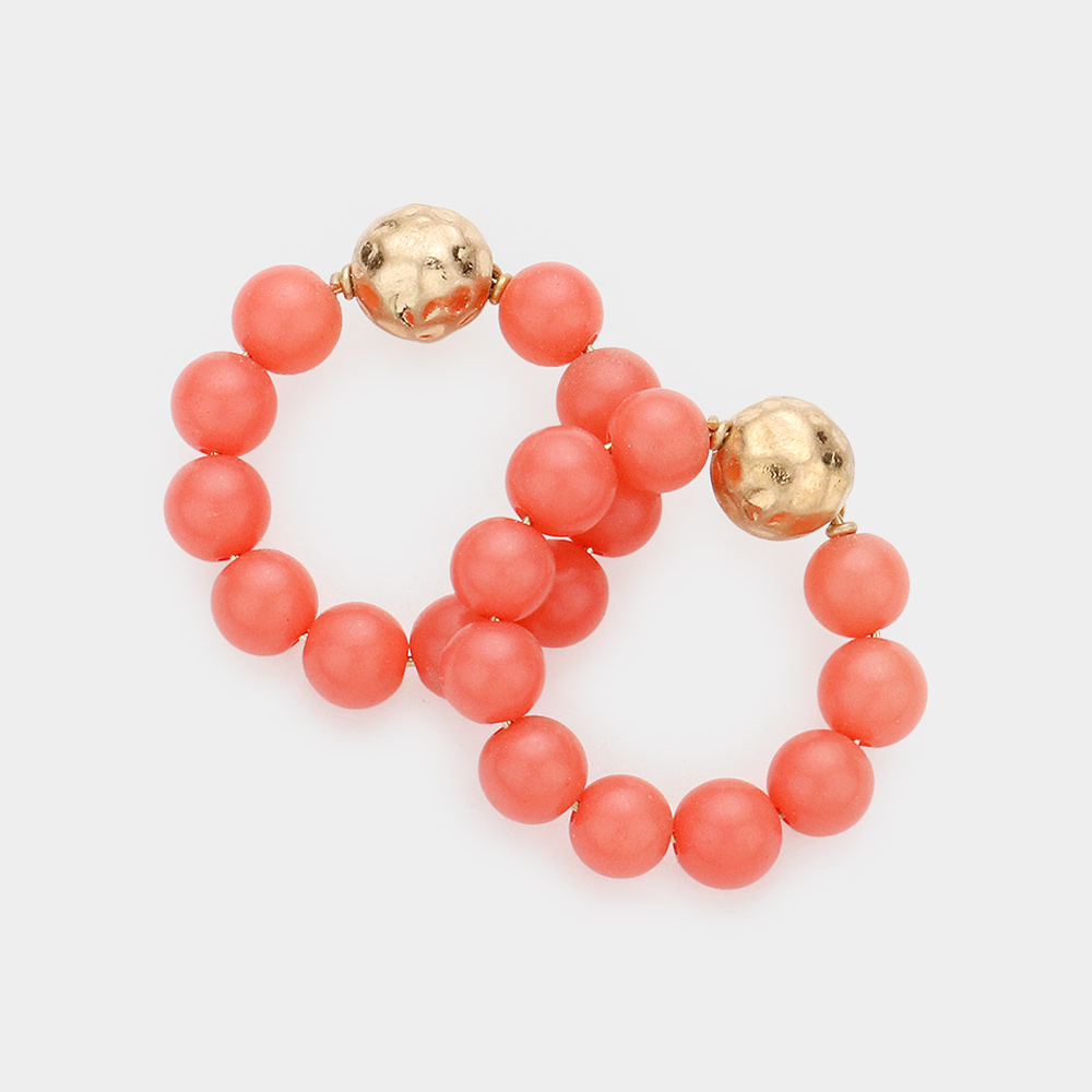 4PCS - Irregular Metal Round Charm Natural Stone Wood Beaded Stretch Bracelets
