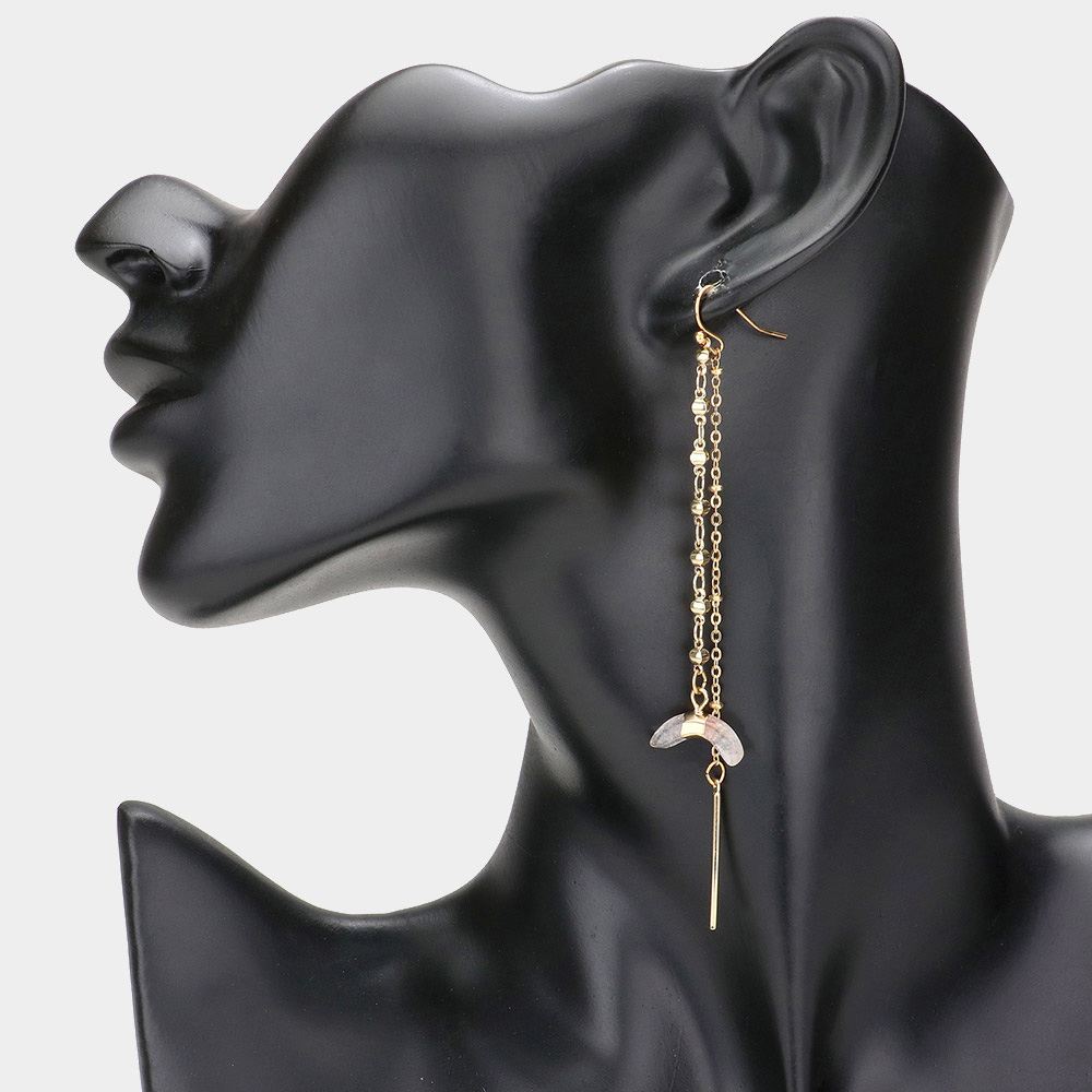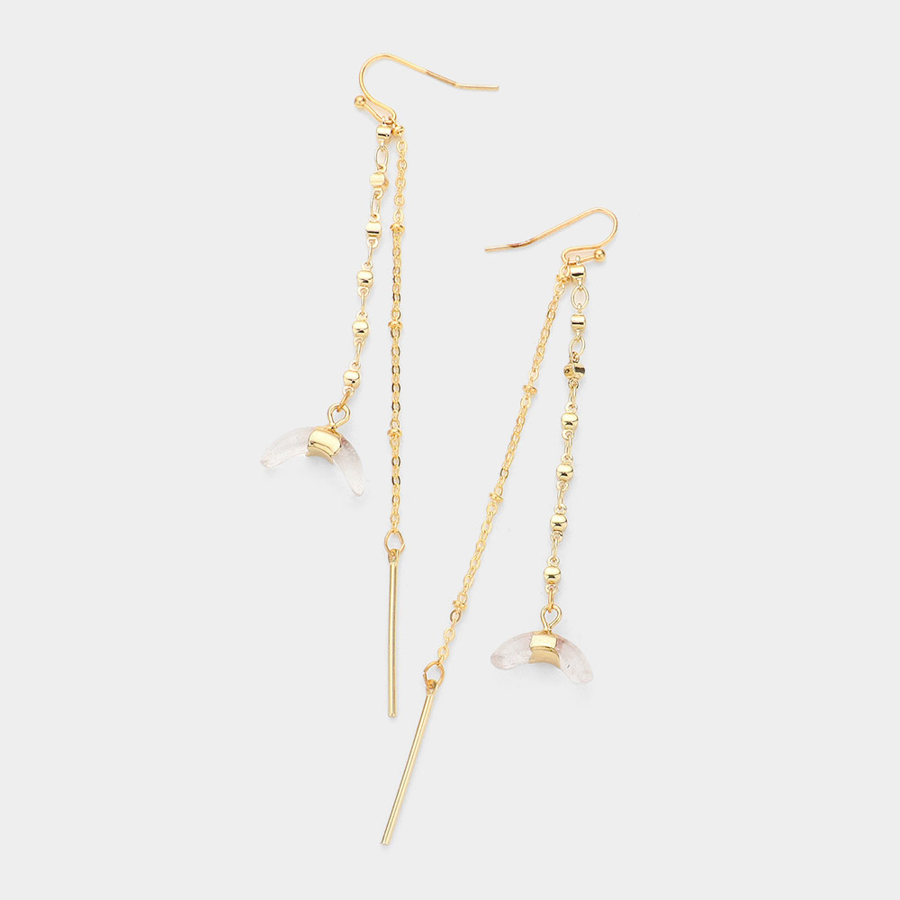 Gold Dipped Brass Metal Natural Stone Quatrefoil Station Necklace