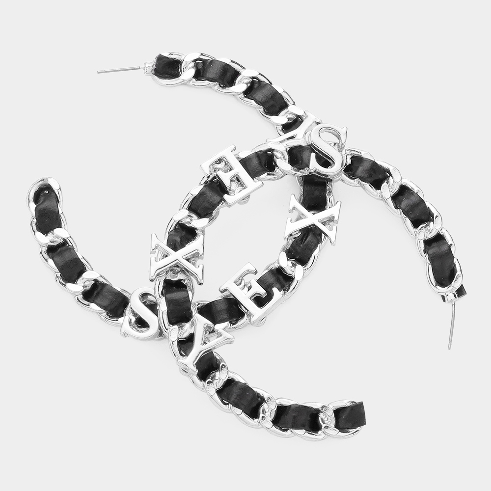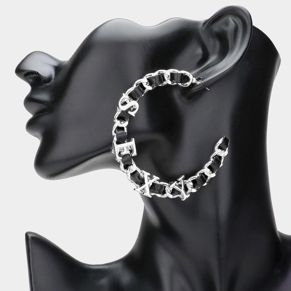 Sexy Message Faux Black Leather Metal Chain Hoop Earrings
