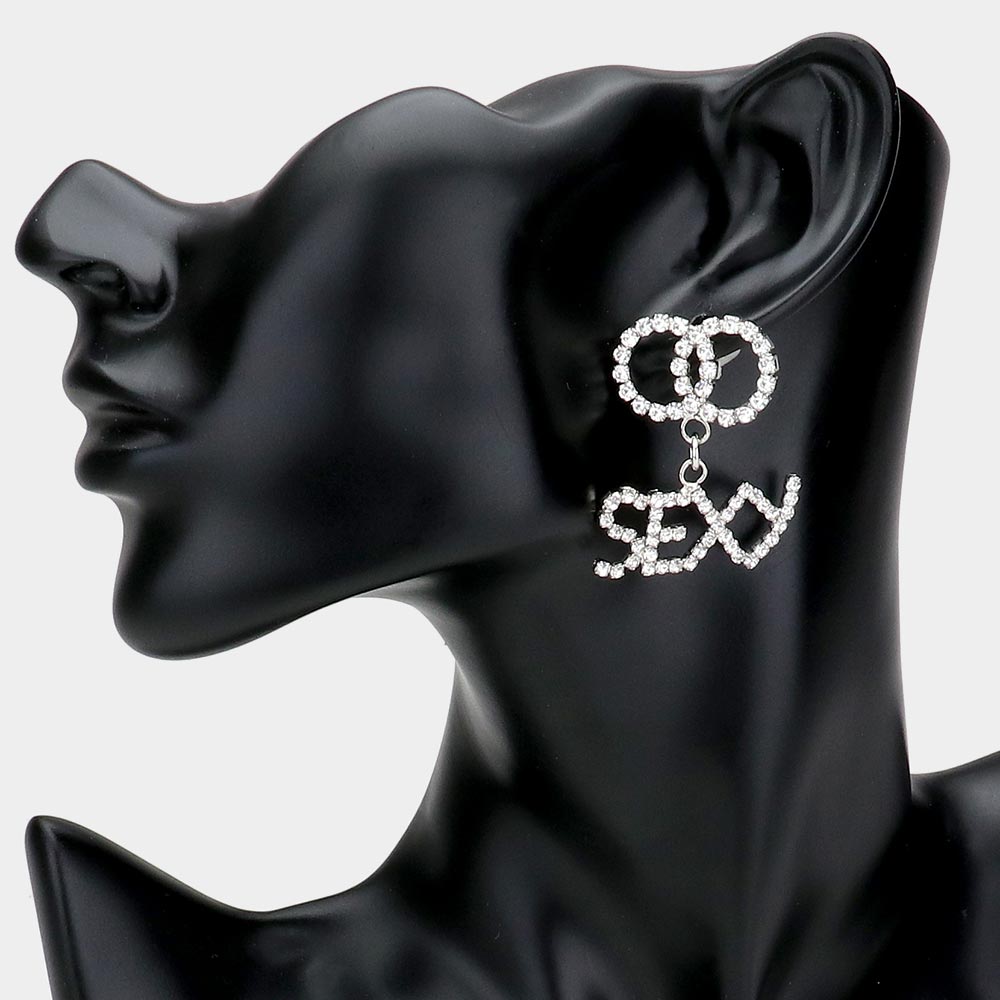 SEXY Rhinestone Embellished Message Dangle Earrings