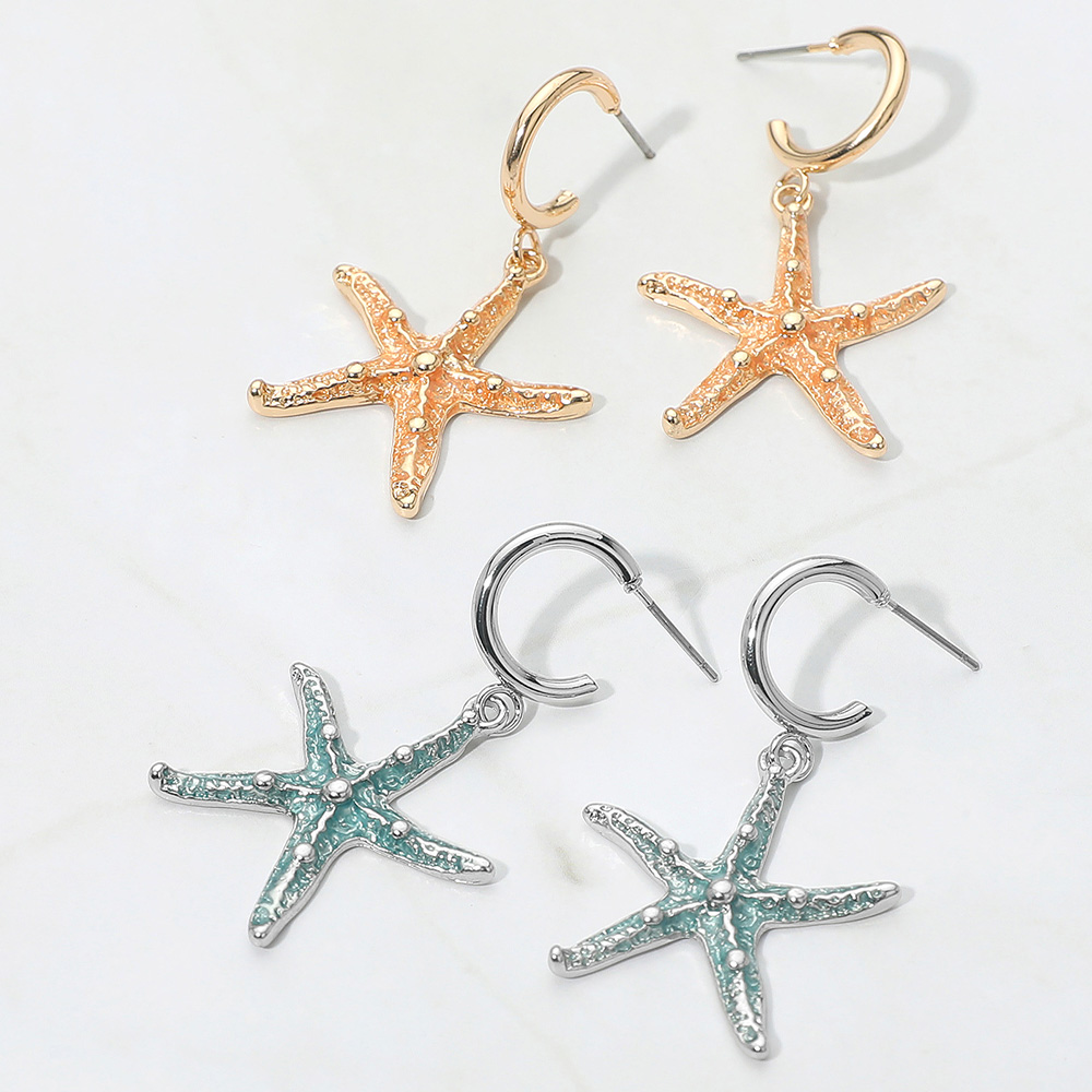 Details • Size : 1.1" X 1.75" • Charming starfish drop hoop earrings inspired by the ocean, perfect for adding a coastal touch to any outfit. Lightweight and stylish, these earrings are ideal for vacations, summer outings, or gifting to ocean lovers who enjoy nautical or beach-themed jewelry accessories. • Lead and Nickel Compliant • Sterling Silver Post • Sterling Silver Dipped