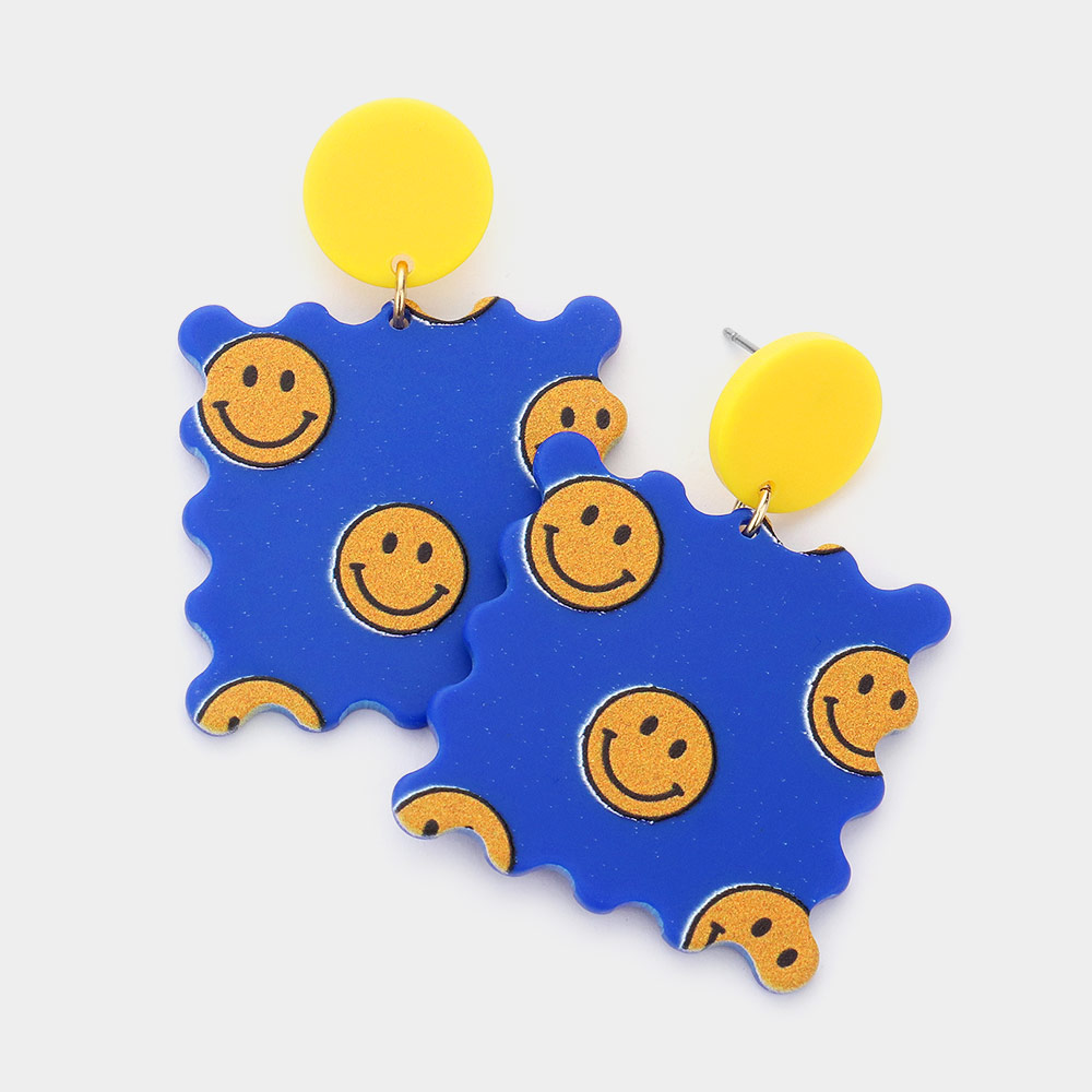 Felt Back Floral Seed Beaded Smile Dangle Earrings
