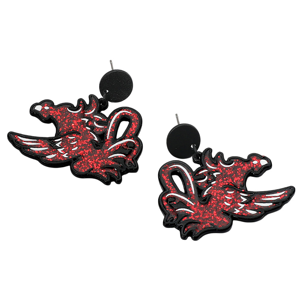 Details • Size : 1.2" X 1.5" • Post Back • Bring fiery energy to your look with these game day gamecock drop earrings. Designed with bold glitter detailing and dynamic winged shapes, they add power and sparkle to any fan outfit. Perfect for tailgates, pep rallies, or cheering from the stands with unstoppable team spirit. • Lead and Nickel Compliant