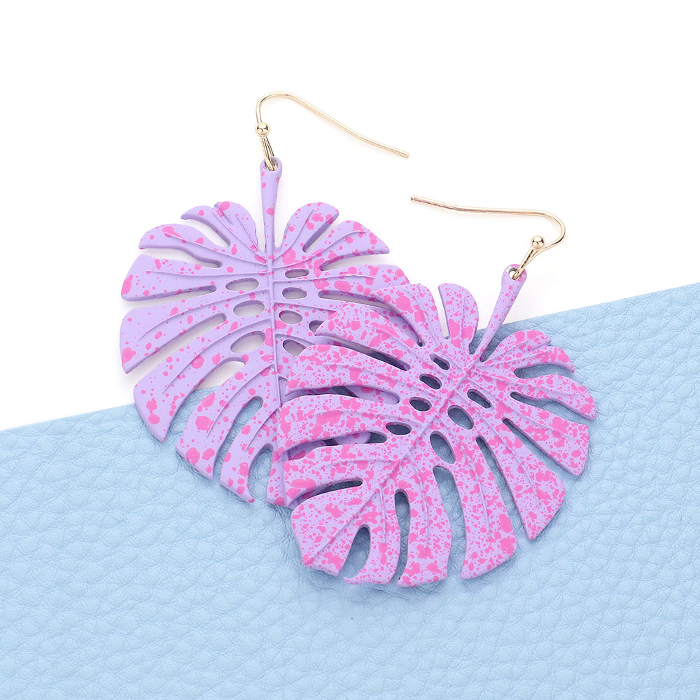 Celluloid Acetate Tropical Leaf Dangle Earrings