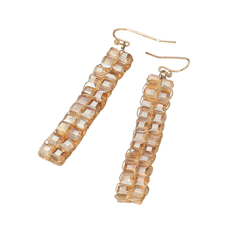 Details • Size : 0.3" X 2.5" • Fish Hook Back • Add a modern edge to your look with these geometric drop earrings featuring stacked square bead detailing. Lightweight yet striking, they bring a bold and contemporary flair to any outfit, perfect for casual styling, evening wear, or making a statement at special occasions. • Lead and Nickel Compliant