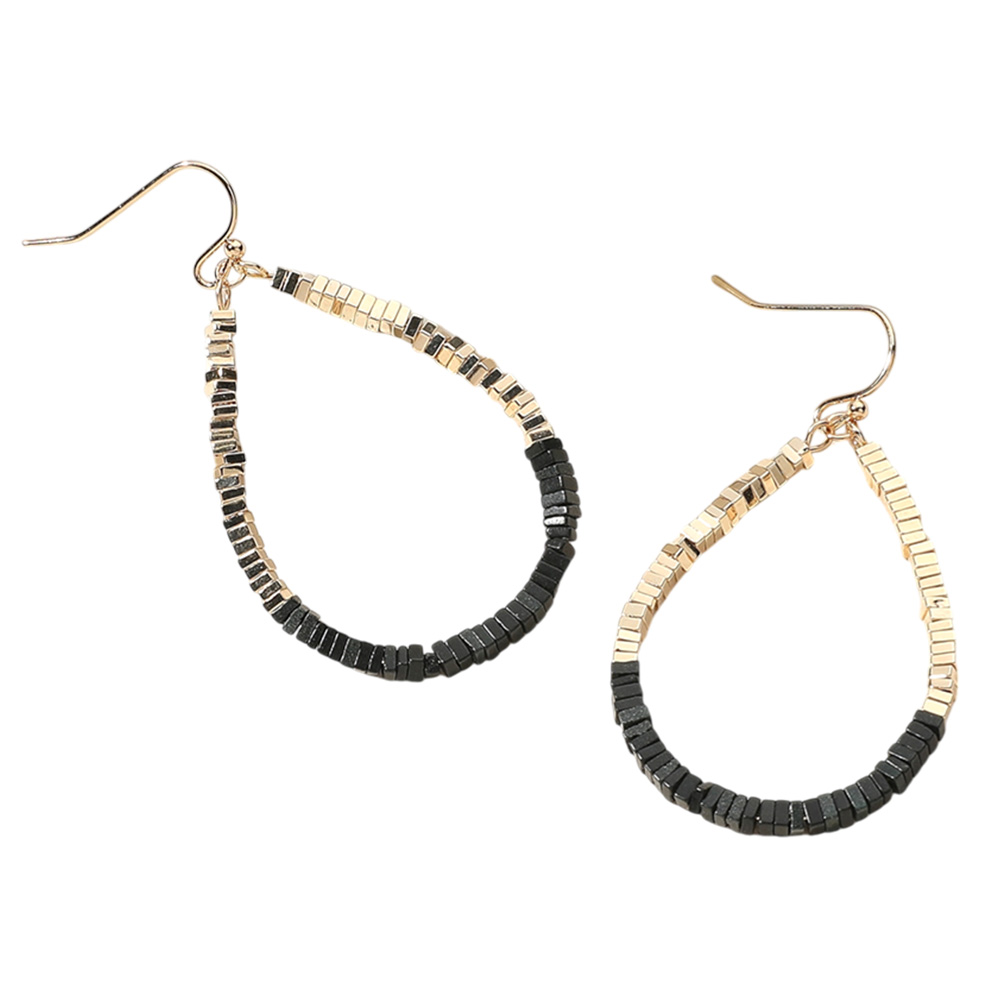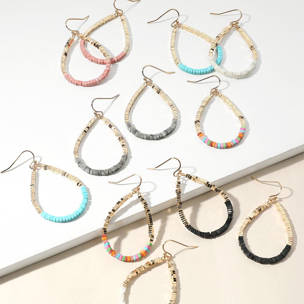 Square Beaded Open Teardrop Dangle Earrings
