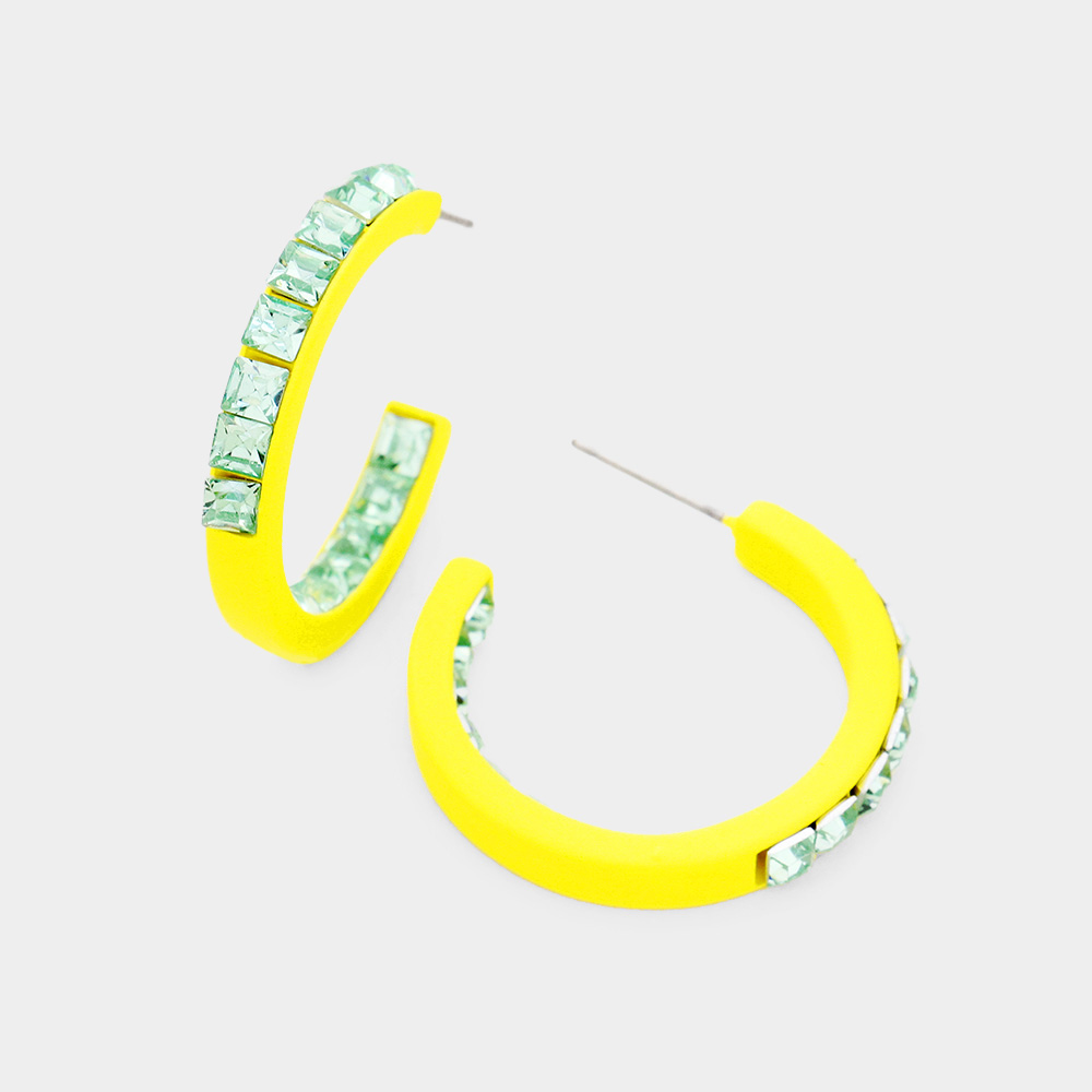 Square Rhinestone Stone Accented Hoop Earrings
