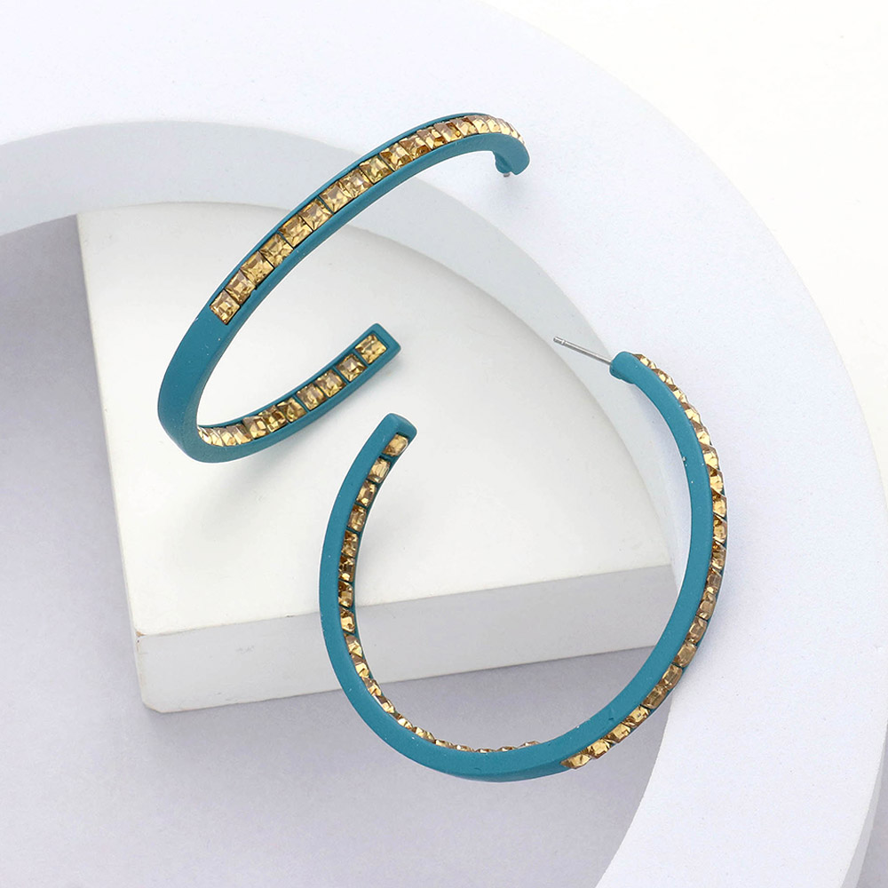 Square Stone Embellished Hoop Earrings