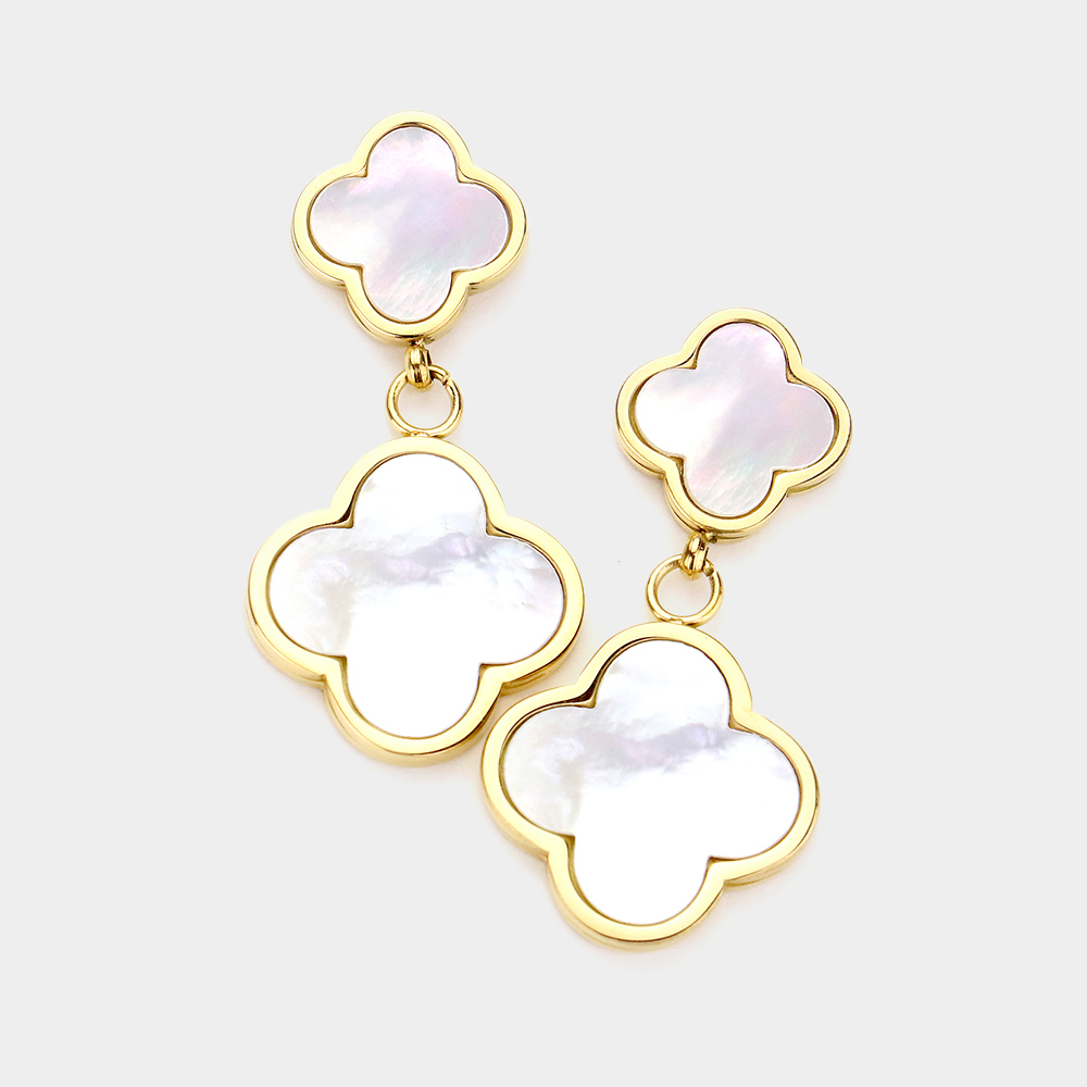 Stainless Steel Quatrefoil Link Dangle Earrings
