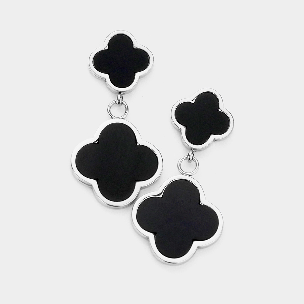 Stainless Steel Quatrefoil Link Dangle Earrings