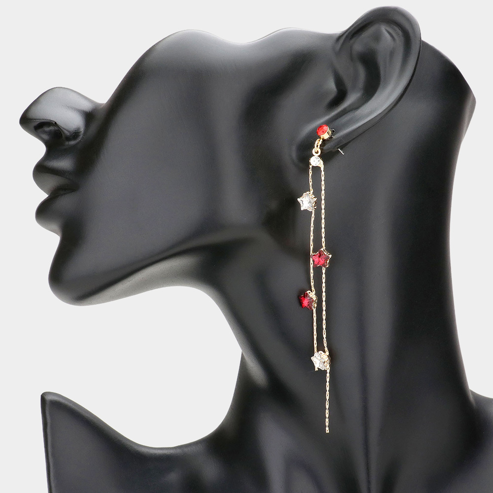 Star Stone Pointed Brass Metal Thread Earrings