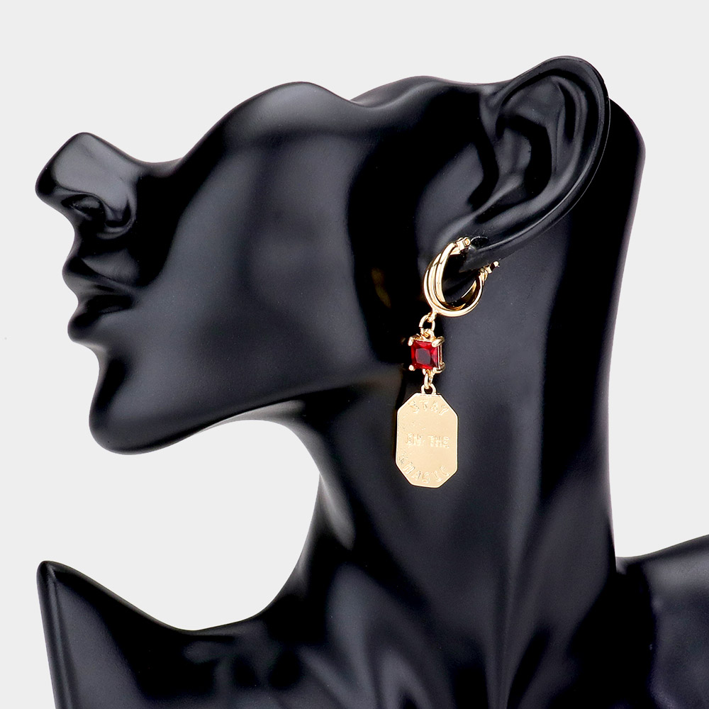 STAY IN THE MAGIC Square Stone Metal Octagon Link Dangle Pin Catch Earrings