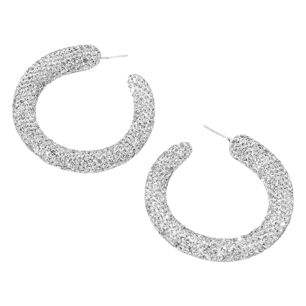 Sterling Silver Post Rhinestone Studded Hoop Earrings