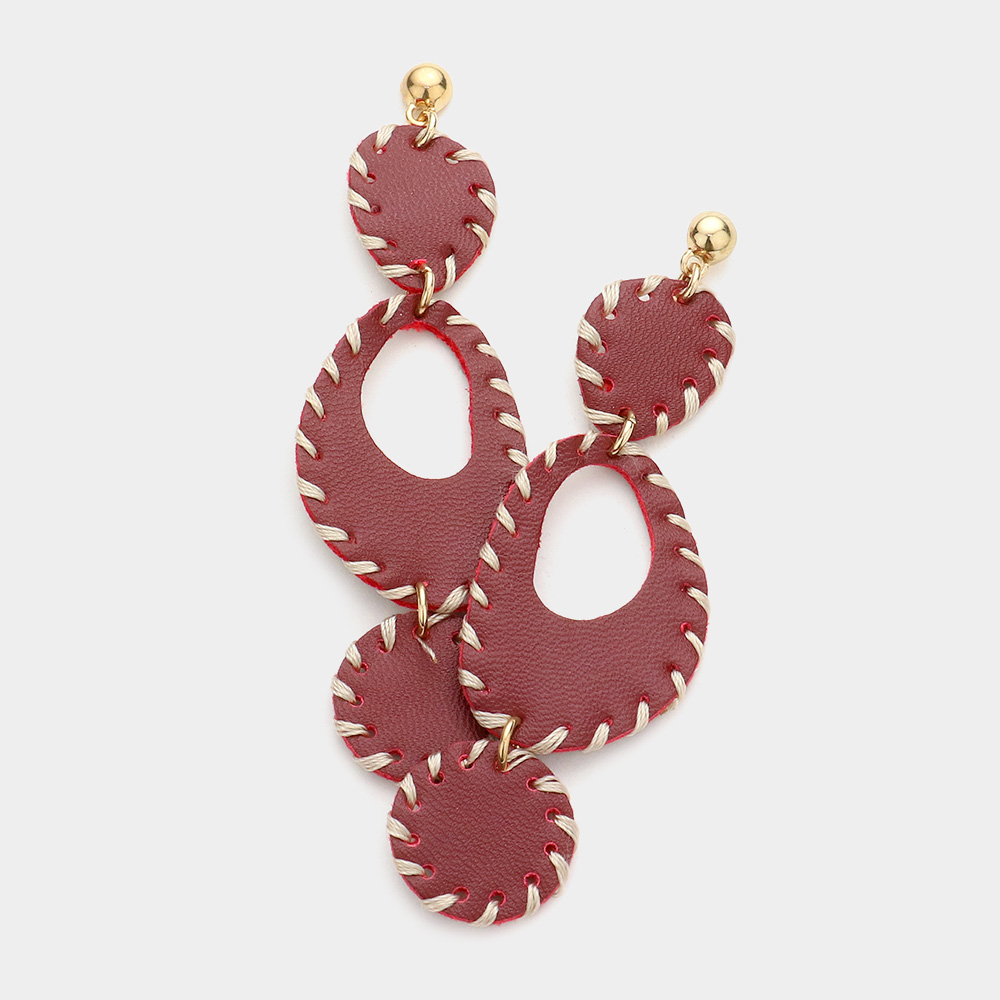 Stitch Trim Irregular Faux Leather Dangle Earrings