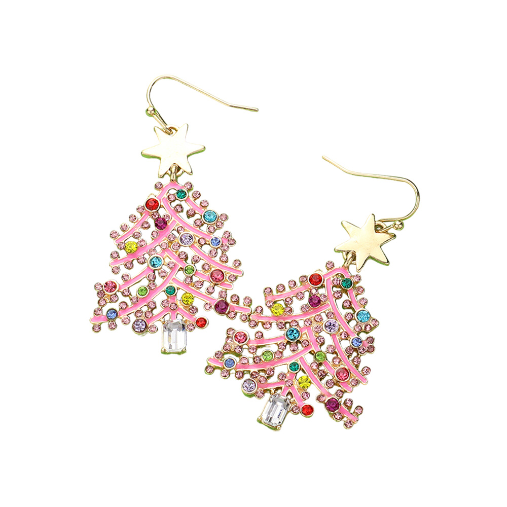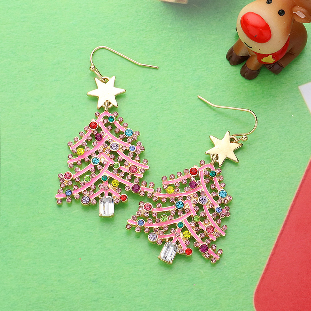 Details • Size : 1.2" X 2.1" • Fish Hook Back • Add sparkle to your holiday look with these rhinestone Christmas tree earrings featuring a star top and festive charm. Perfect for seasonal parties, gifts, or spreading cheer with every outfit. • Lead and Nickel Compliant