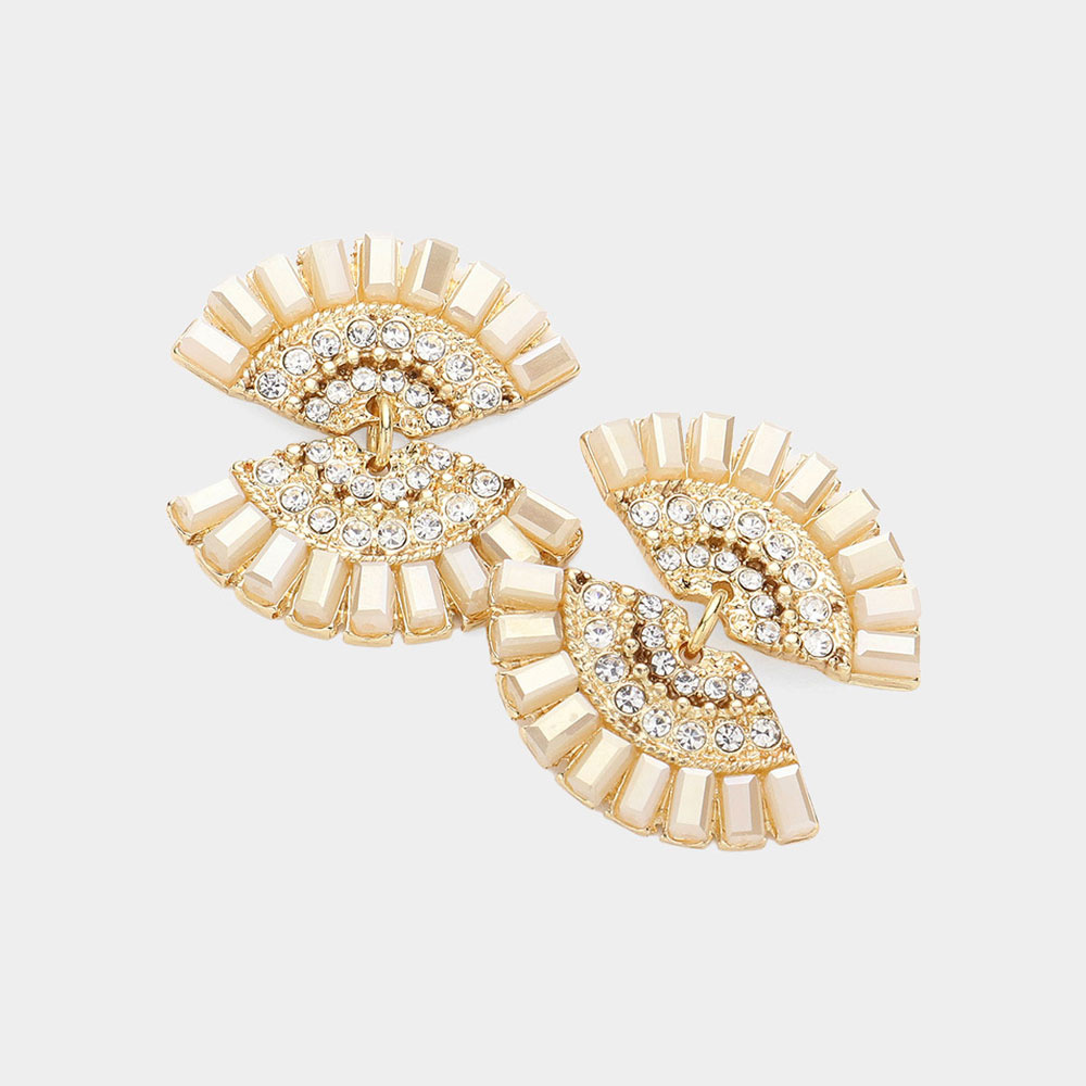 Floral Pearl Stone Cluster Leaf Embellished Tweed Handbag / Crossbody Bag