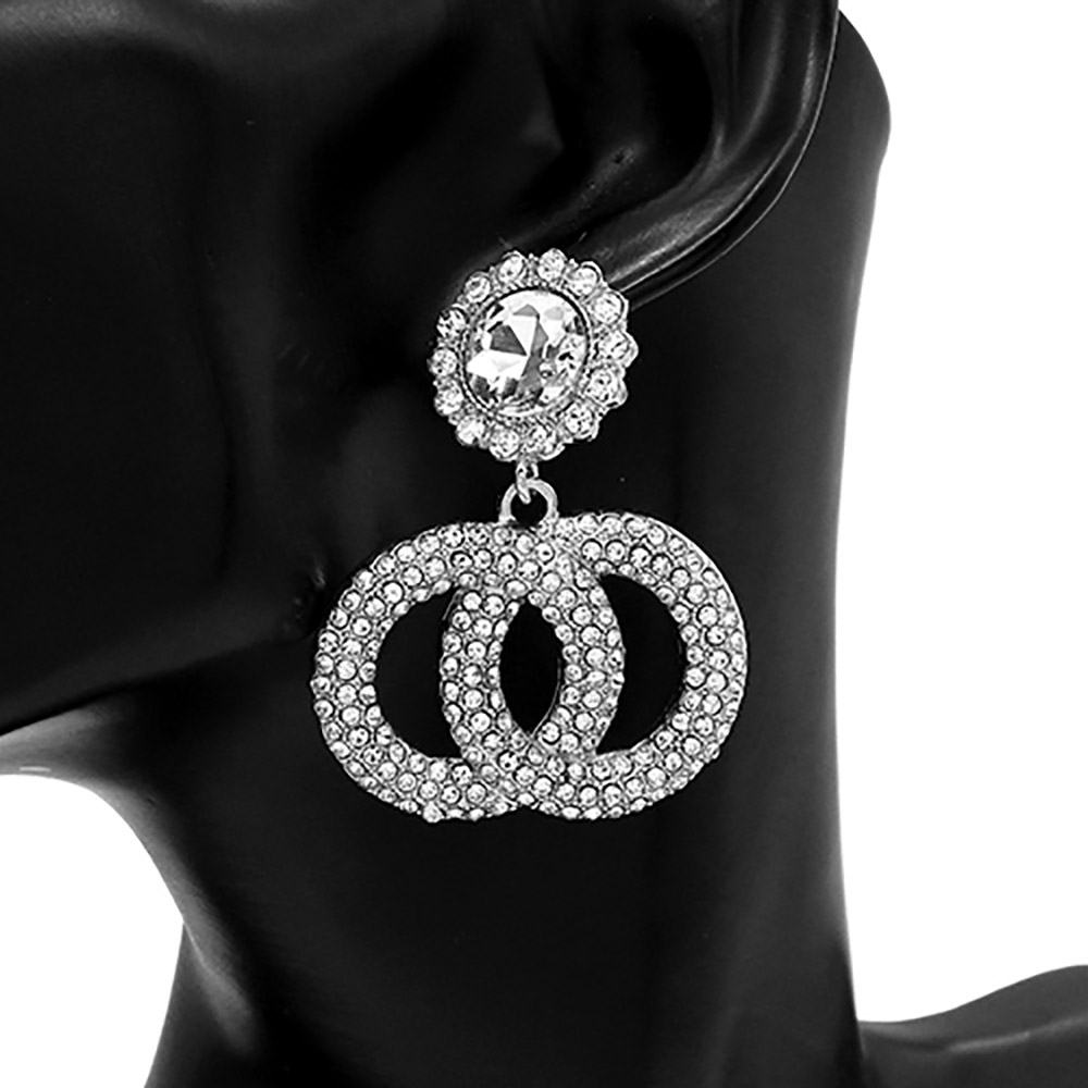Stone Embellished Double Open Circle Link Dangle Earrings