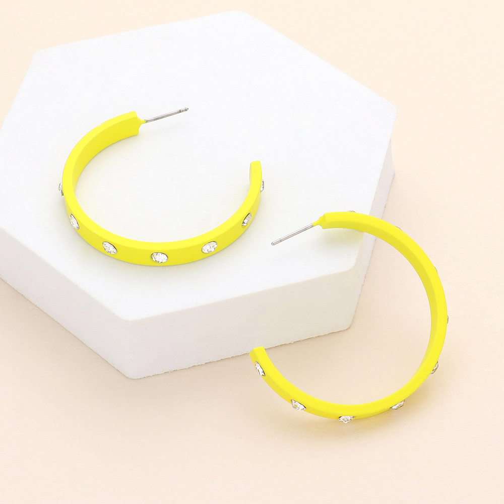 Resin Colorful Rhinestone Pave Hoop Earrings
