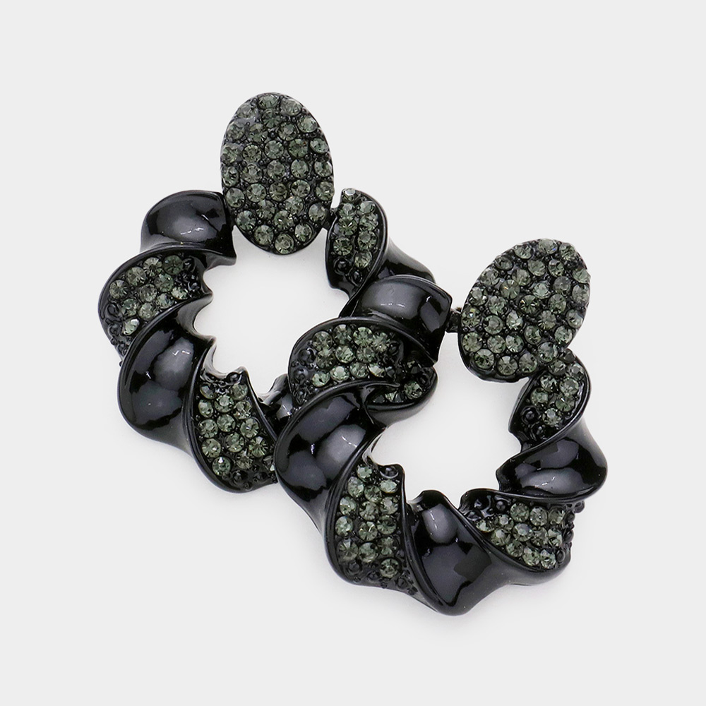 Stone Embellished Spiral Open Circle Chunky Earrings