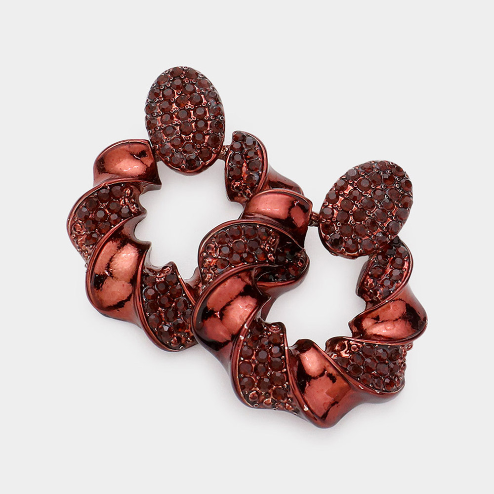Stone Embellished Spiral Open Circle Chunky Earrings