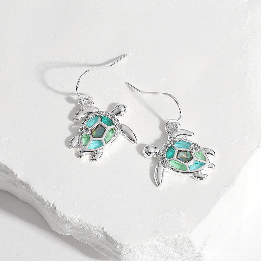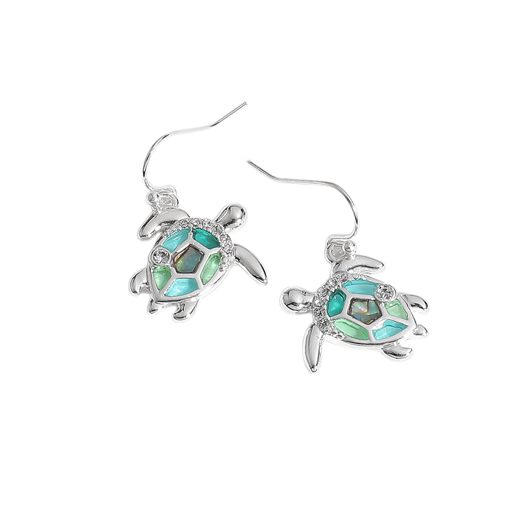 Stone Paved Abalone Sea Glass Sea Turtle Dangle Earrings