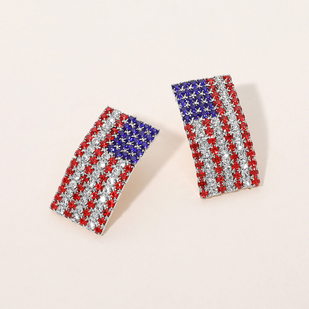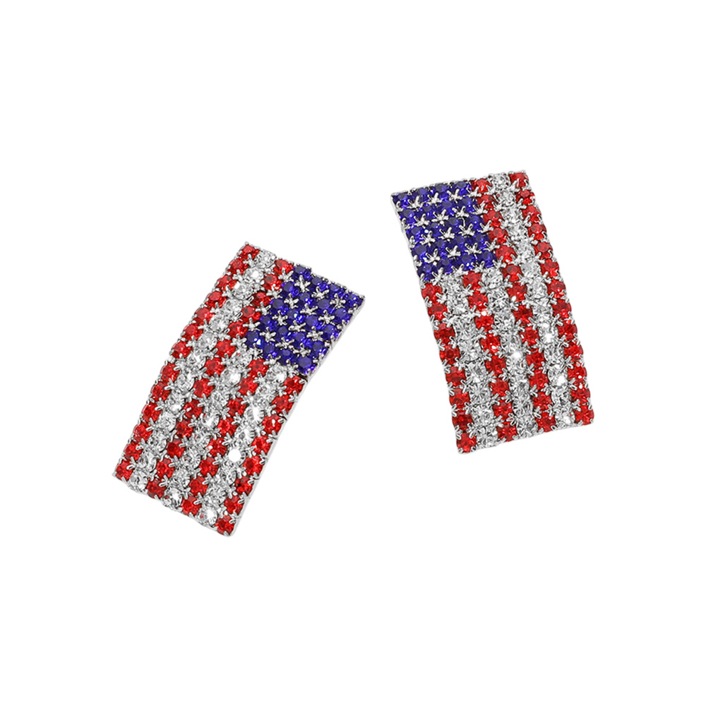 American USA Flag Heart Candy Cane Link Dangle Earrings