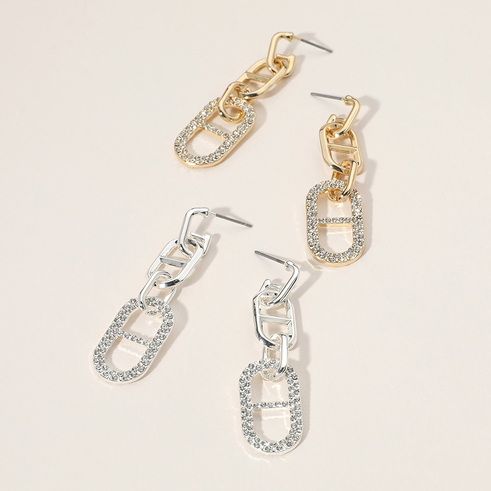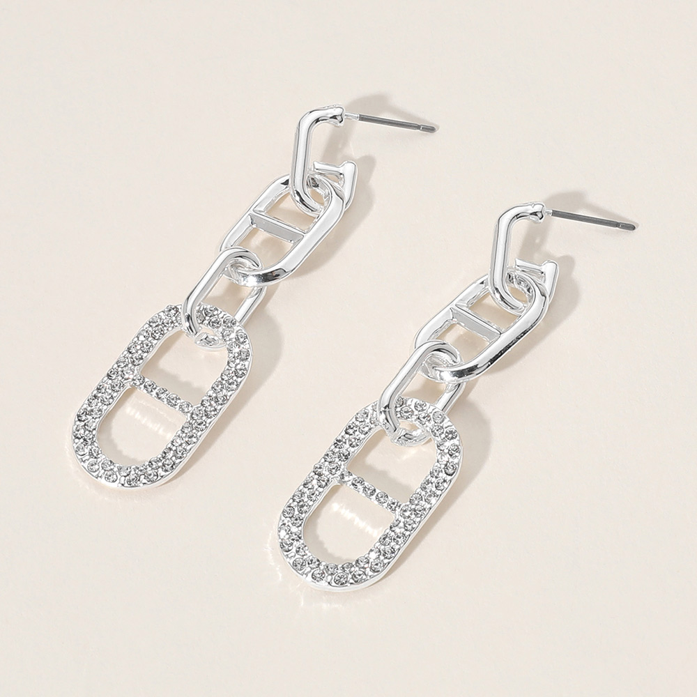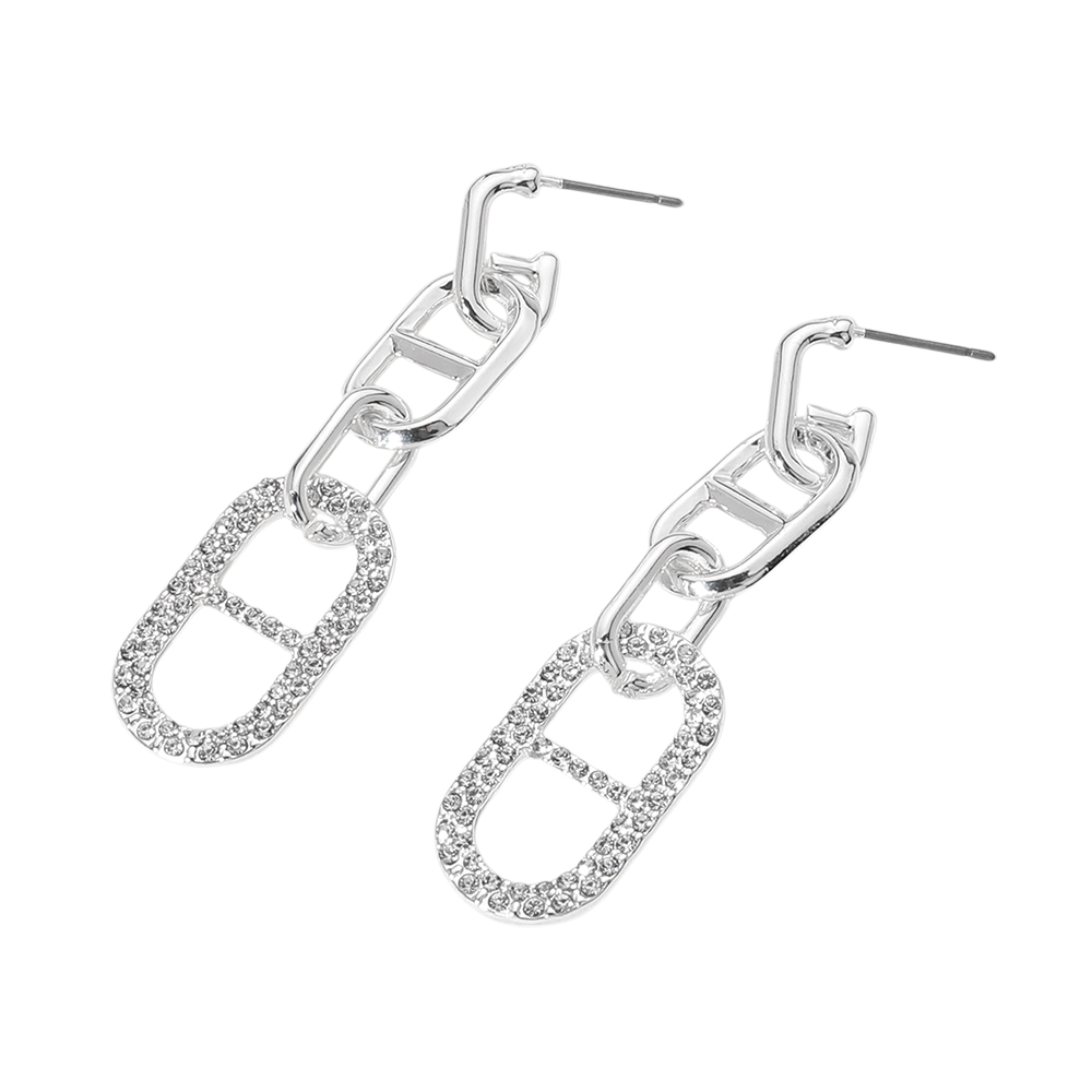 Stone Paved Anchor link Dangle Earrings