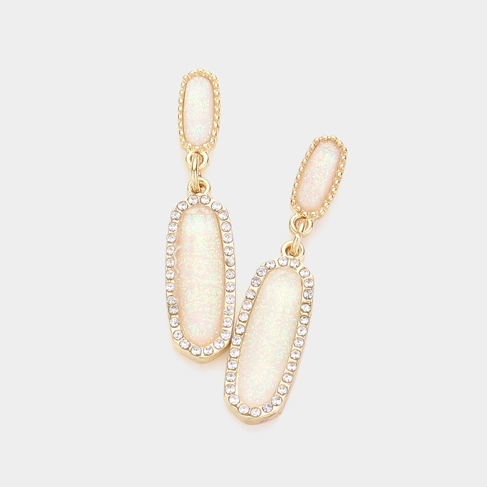 Stone Paved Around Oval Dangle Earrings