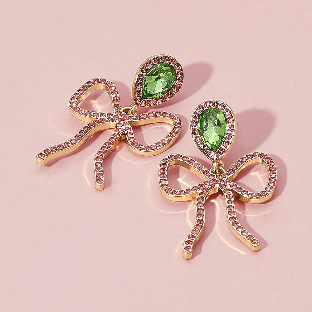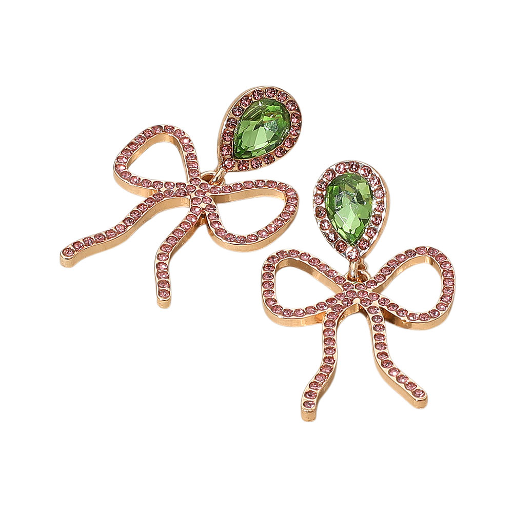 Details • Size : 1.1" X 1.75" • Post Back • Whimsical and refined, these drop earrings feature openwork bow designs adorned with sparkling stones and teardrop gem accents. Perfect for special occasions or adding charm to everyday looks with a touch of playful elegance. • Lead and Nickel Compliant
