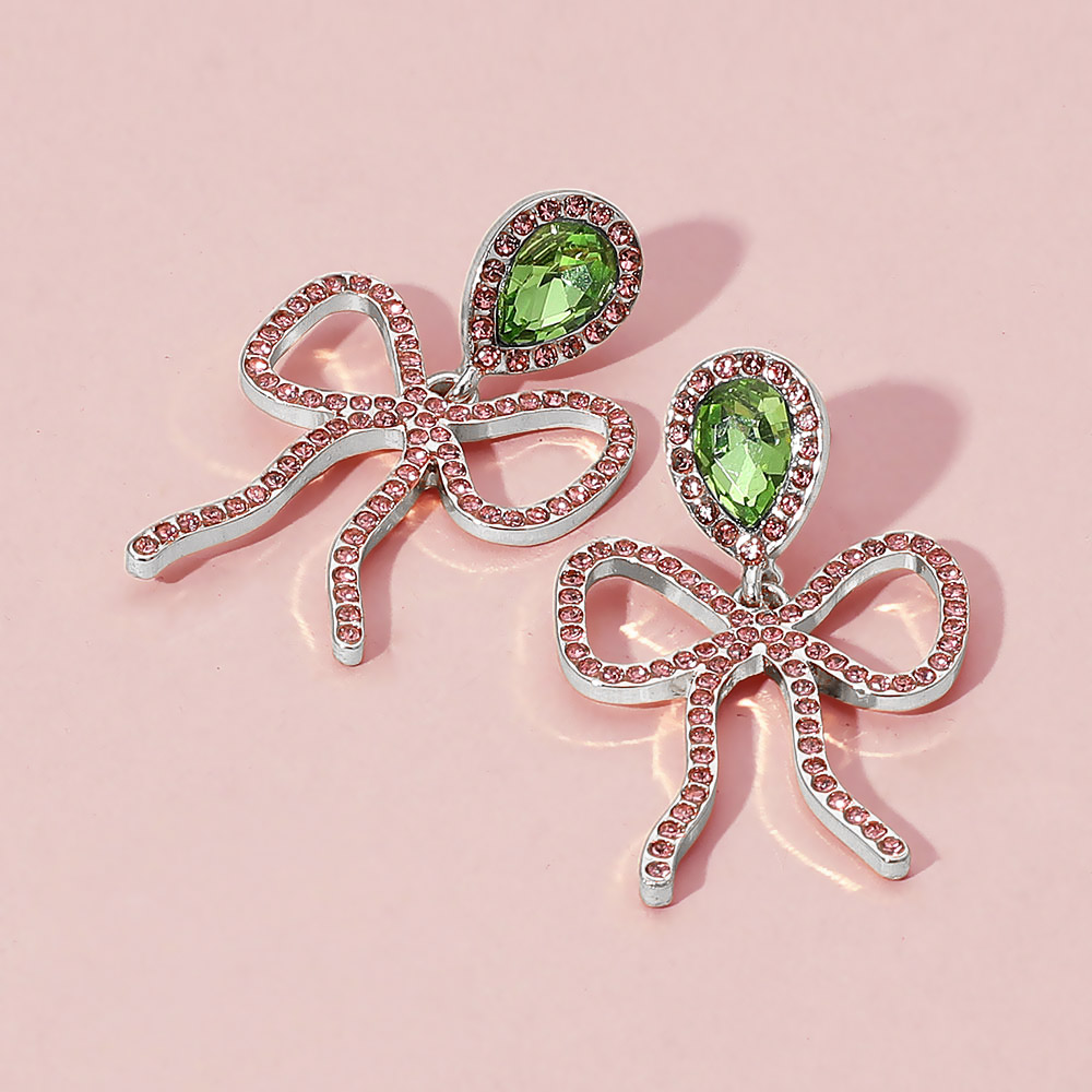 Details • Size : 1.1" X 1.75" • Post Back • Whimsical and refined, these drop earrings feature openwork bow designs adorned with sparkling stones and teardrop gem accents. Perfect for special occasions or adding charm to everyday looks with a touch of playful elegance. • Lead and Nickel Compliant