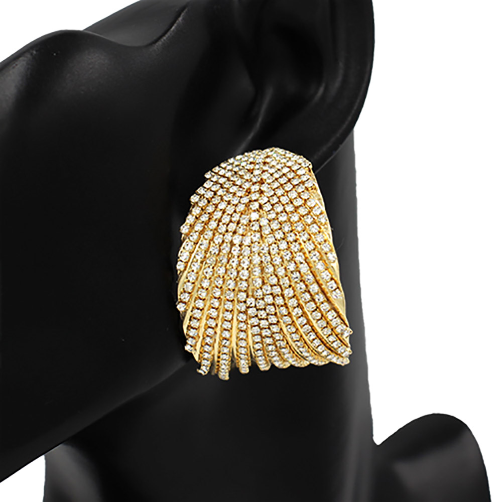 Rhinestone Crystal Leaf Drop Evening Earrings