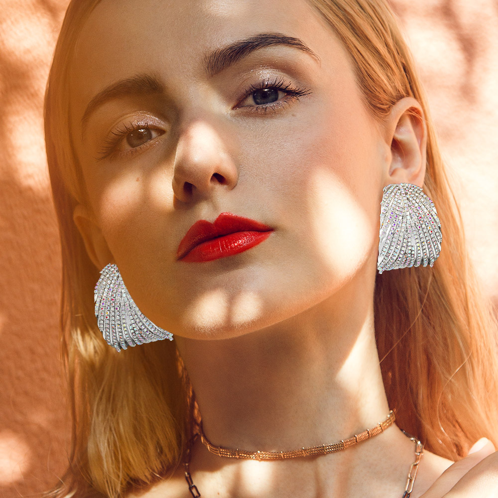 Rectangular Stone Cluster Drop Chandelier Statement Evening Earrings