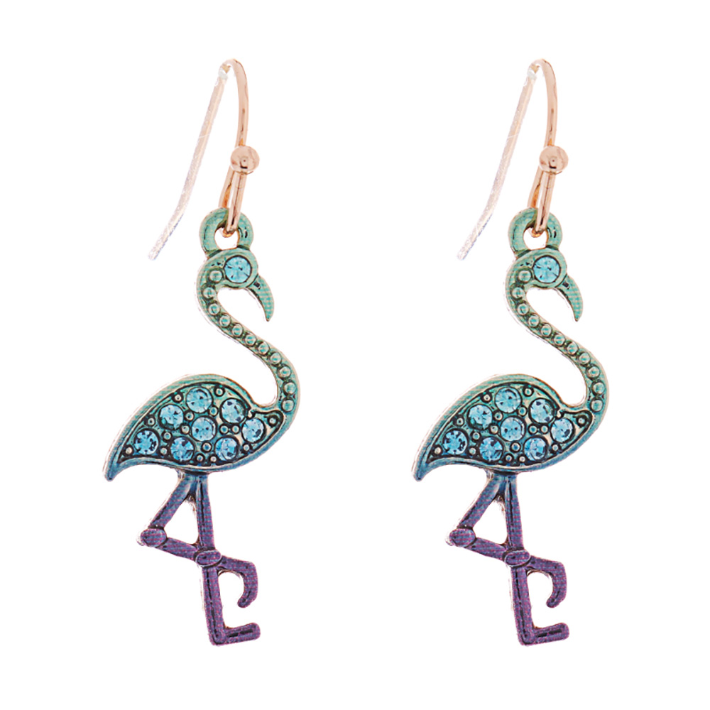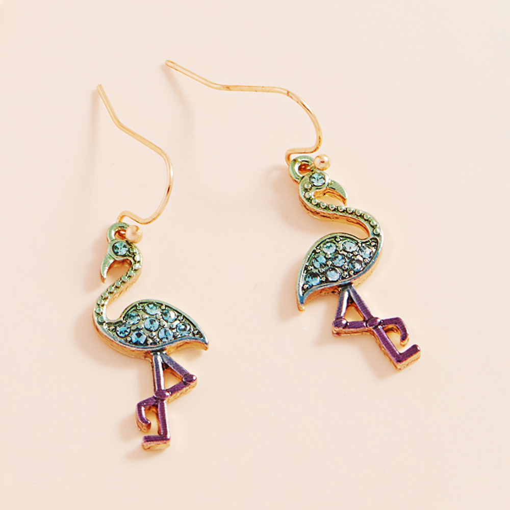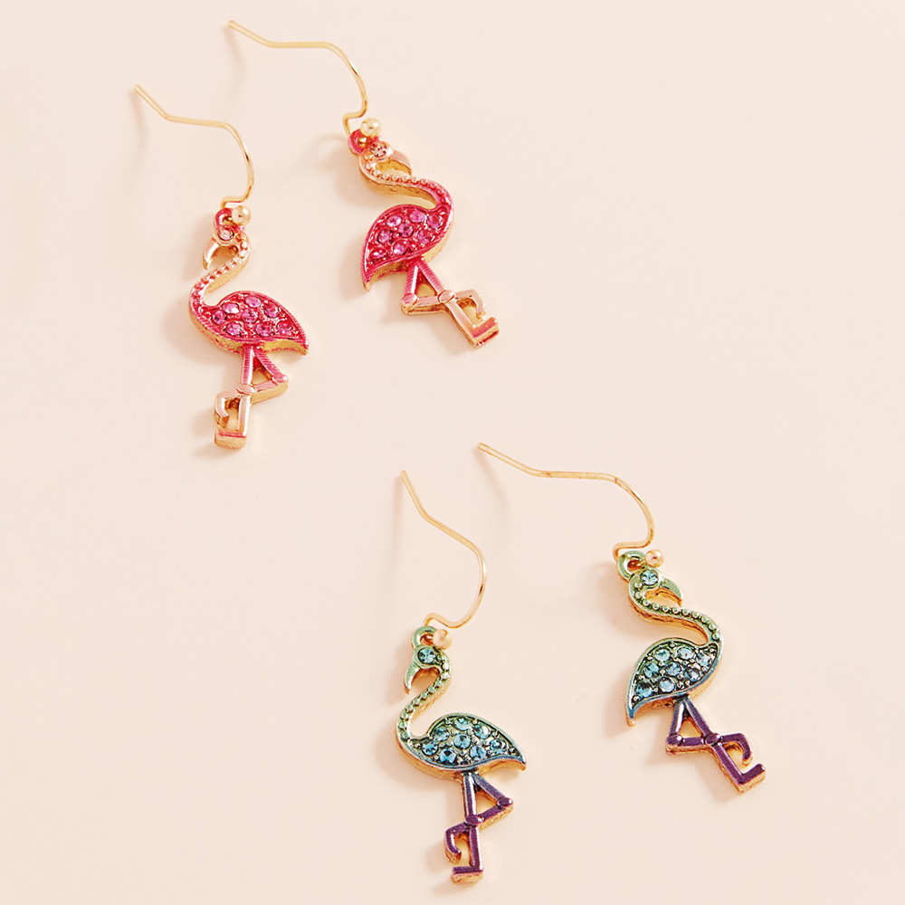 Details • Size : 0.4" X 1.3" • Fish Hook Back • Add a whimsical sparkle to your look with these flamingo charm dangle earrings, adorned with glittering accents and vibrant detailing. Lightweight and full of personality, they’re perfect for casual outings, vacations, or playful accessory lovers. • Lead and Nickel Compliant • Brass
