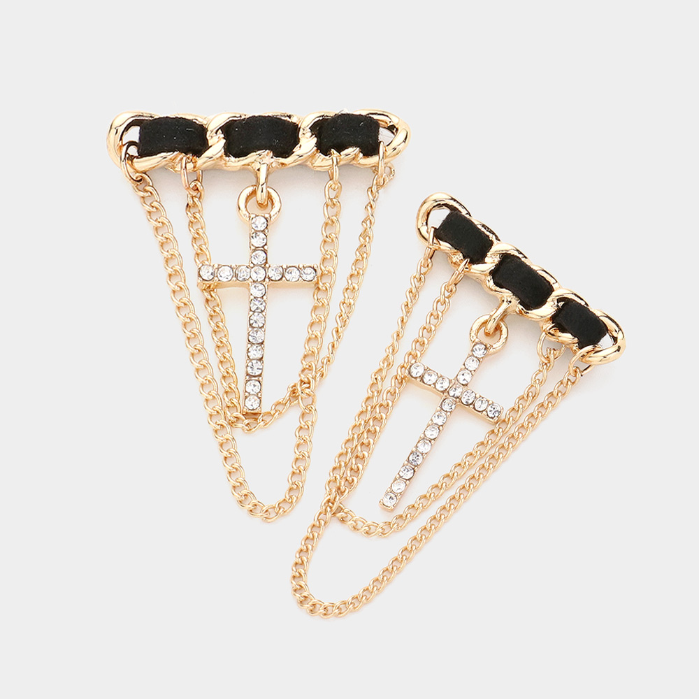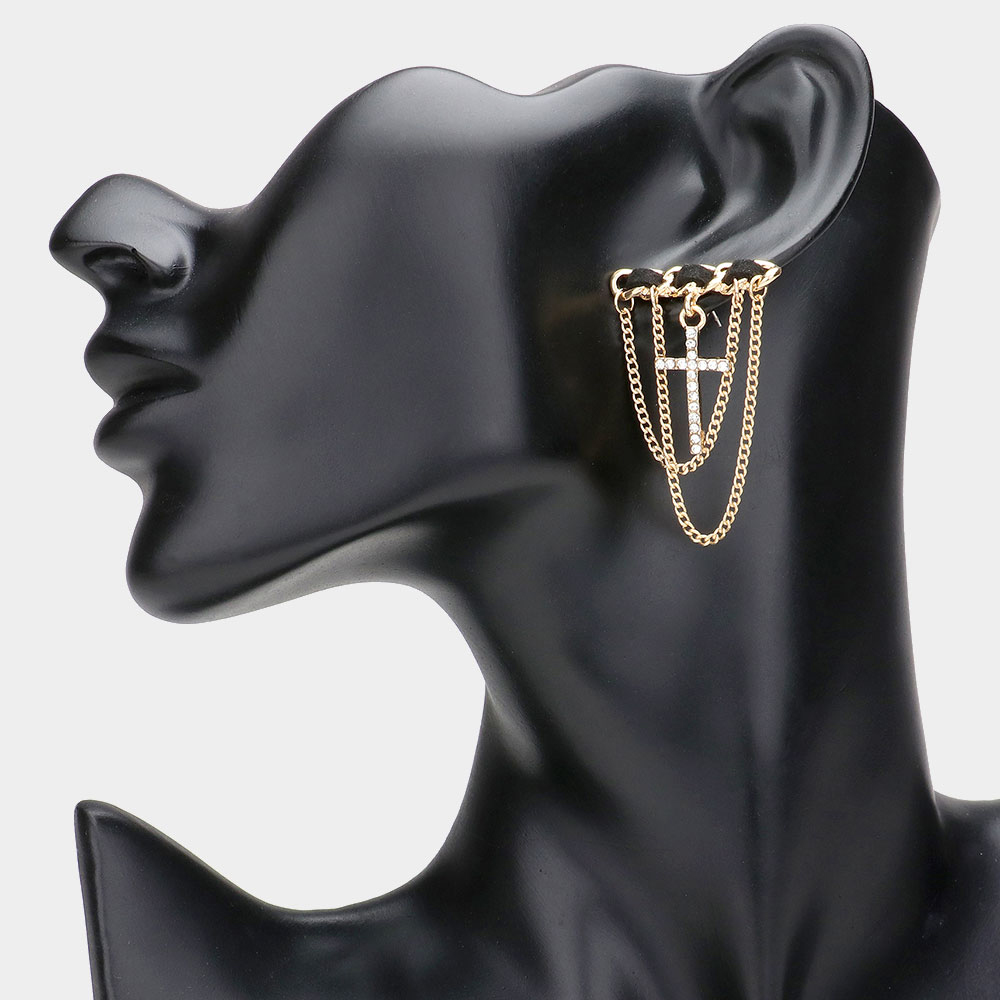 Stone Paved Cross Chain Embellished Earrings