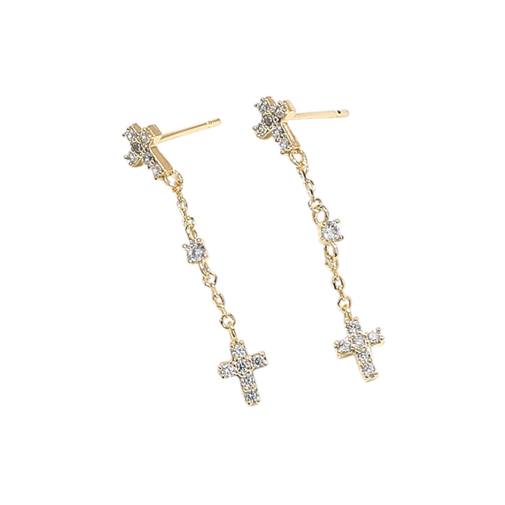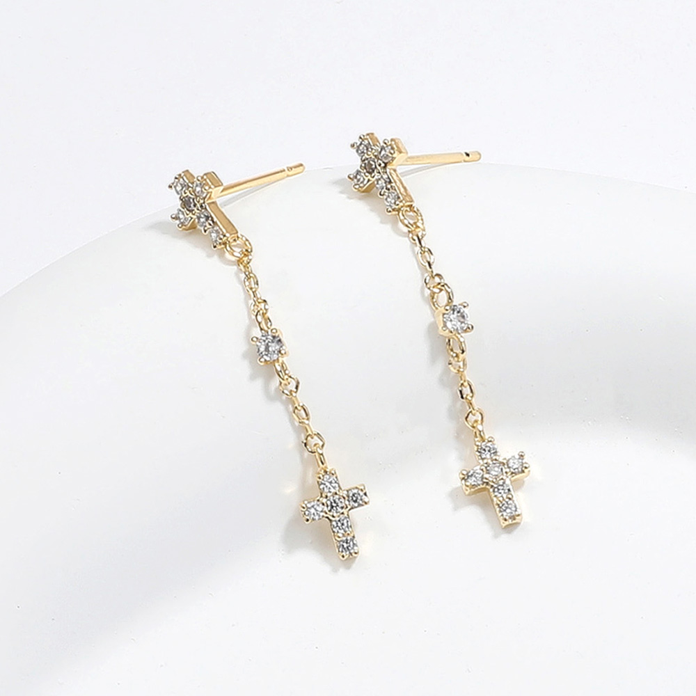 Stone Paved Cross Link Dropdown Brass Earrings