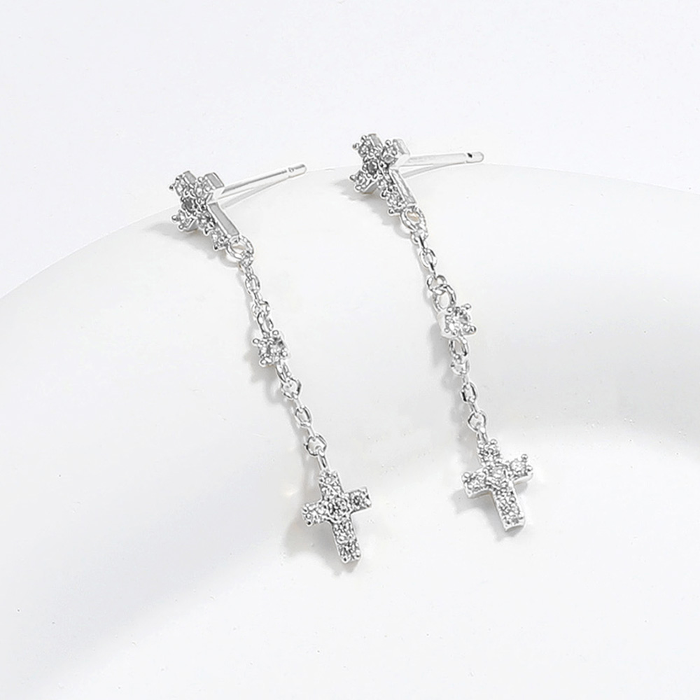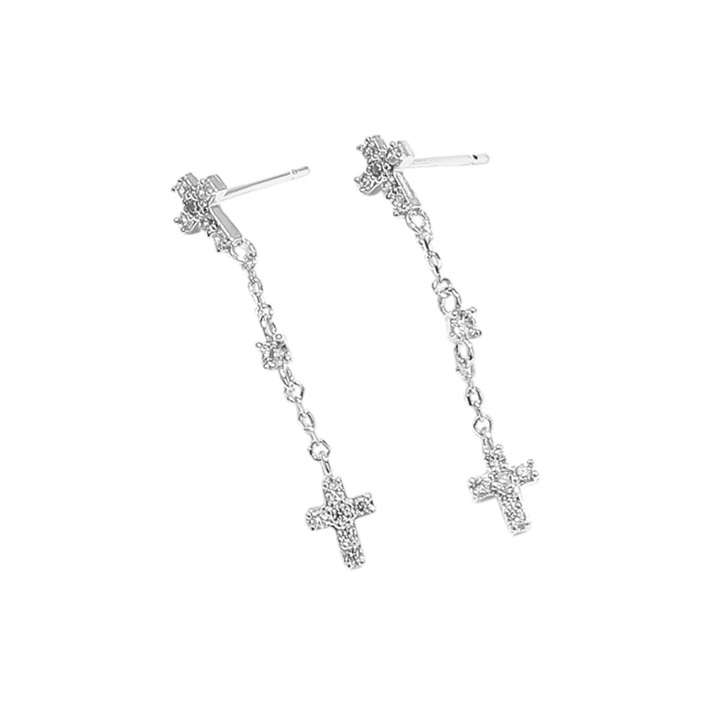 SECRET BOX_Sterling Silver Dipped CZ Cross Stud Earrings