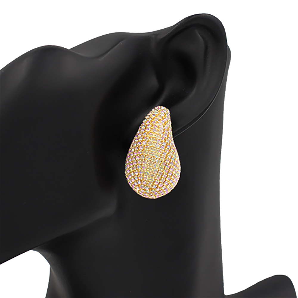 Oversized Bling Rhinestone Studded Twisted Open Teardrop Evening Hoop Earrings