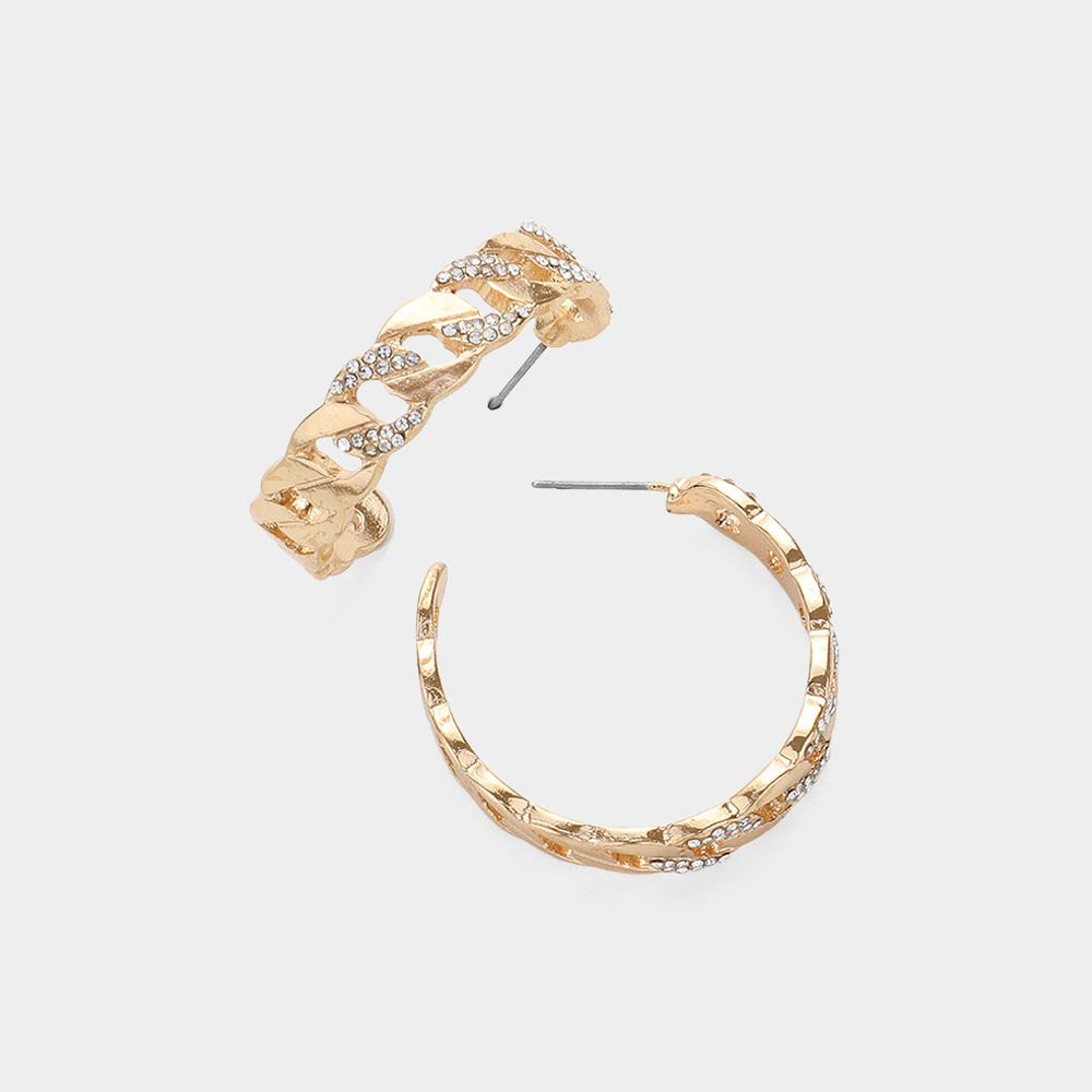 Stone Paved Metal Chain Shaped Hoop Earrings