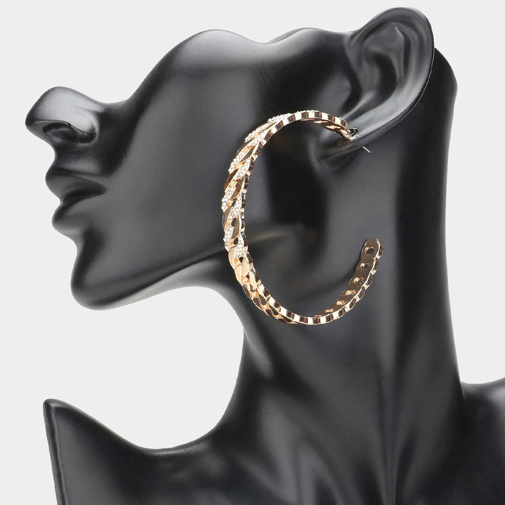 Stone Paved Metal Chain Shaped Hoop Earrings