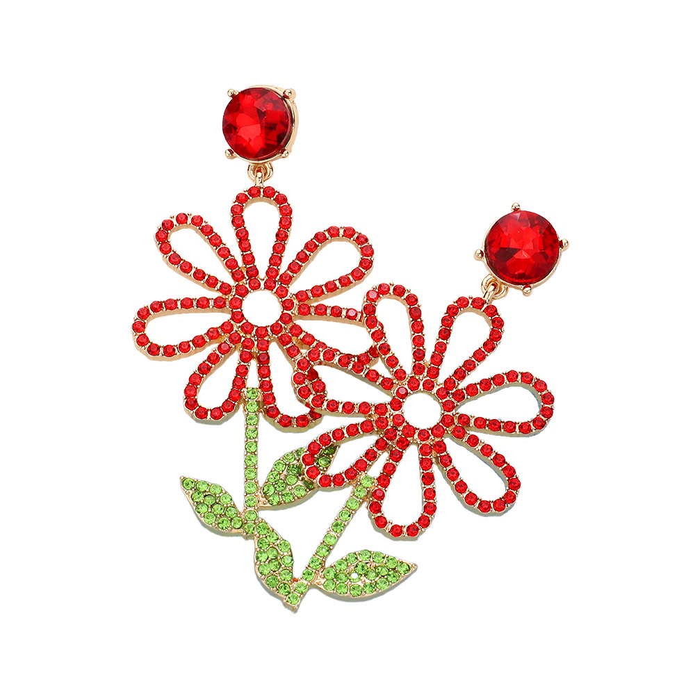 Stone Paved Open Flower Dangle Earrings