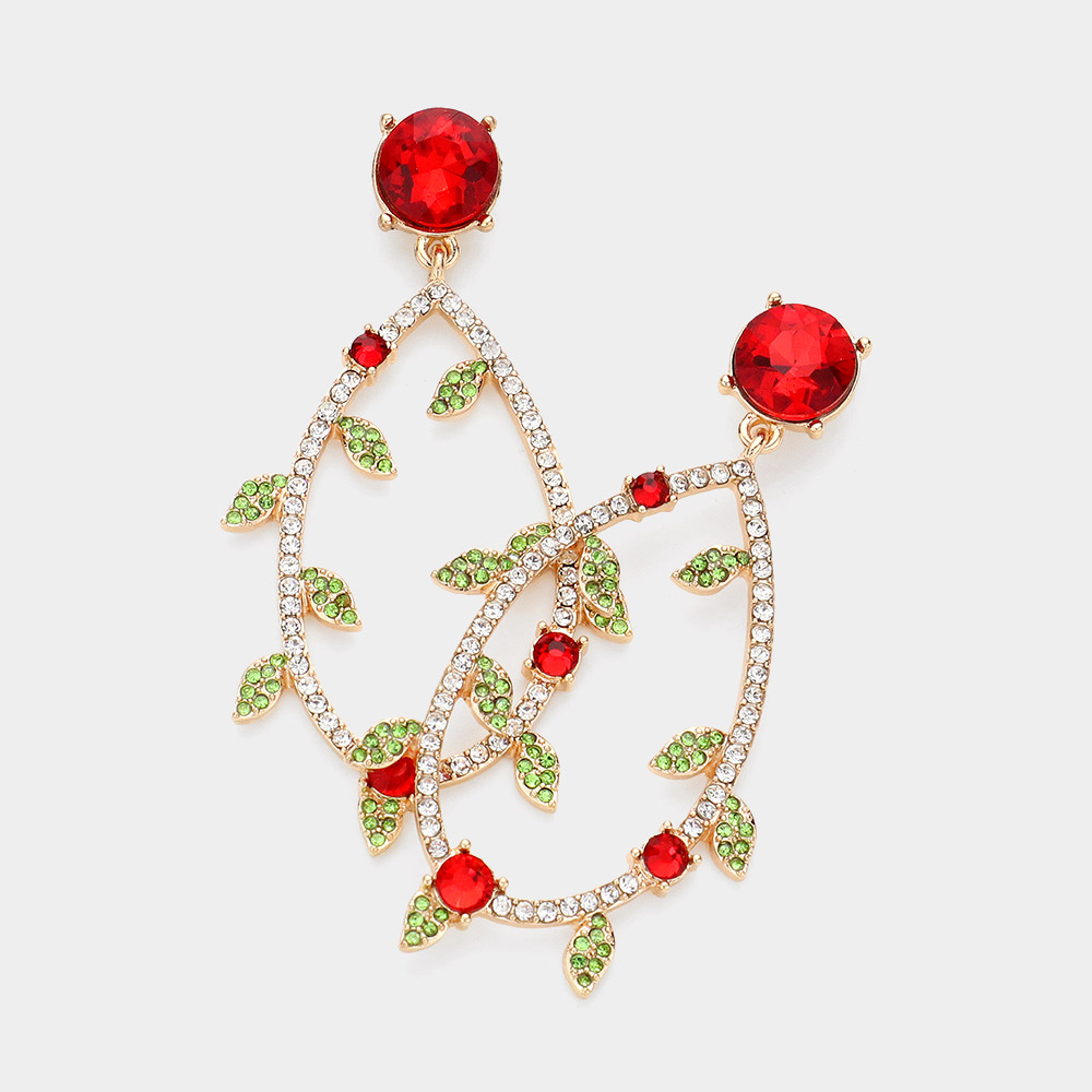 Stone Paved Open Teardrop Leaves Dangle Earrings