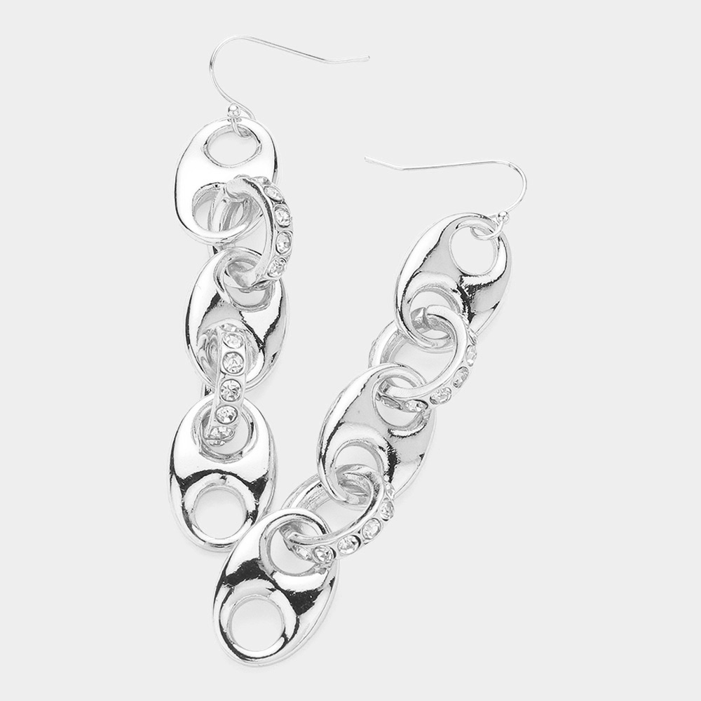 Open Metal Oval Accented Colored Chain Layered Necklace