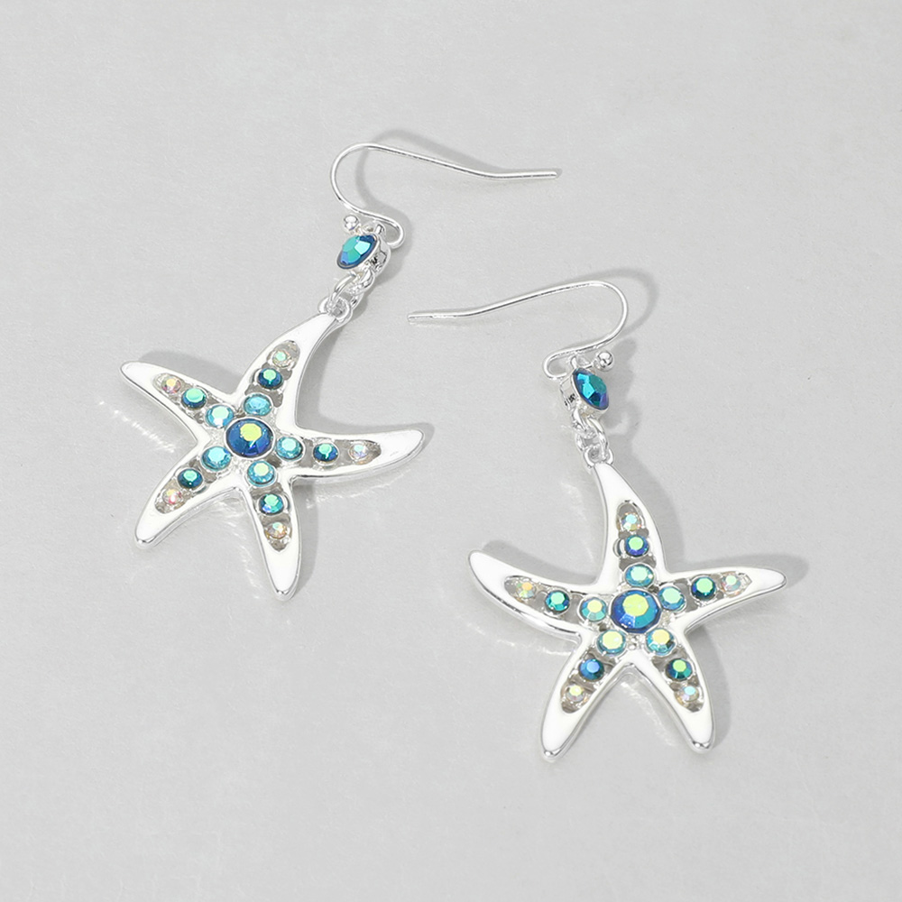5PCS - Starfish Shell Accent Faceted Beaded Stretch Multi Layered Bracelets