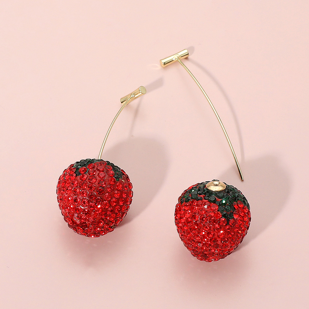 Stone Paved Strawberry Drop Earrings