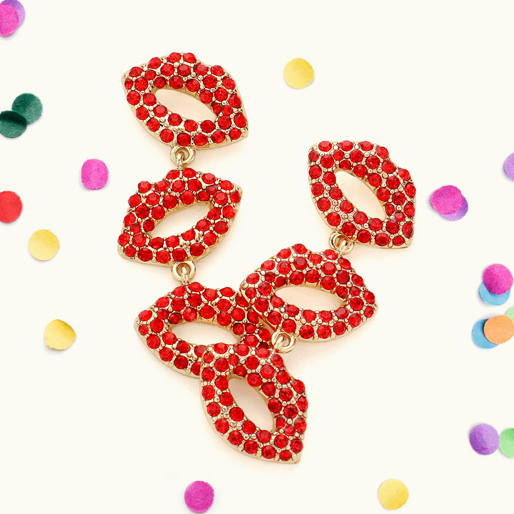 Oversized Rhinestone Cluster Heart Evening Clip On Earrings