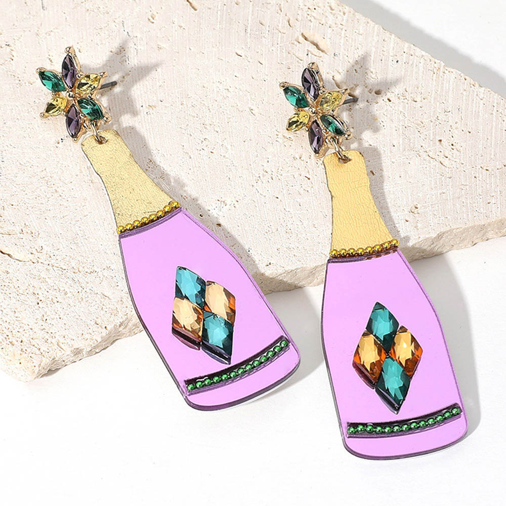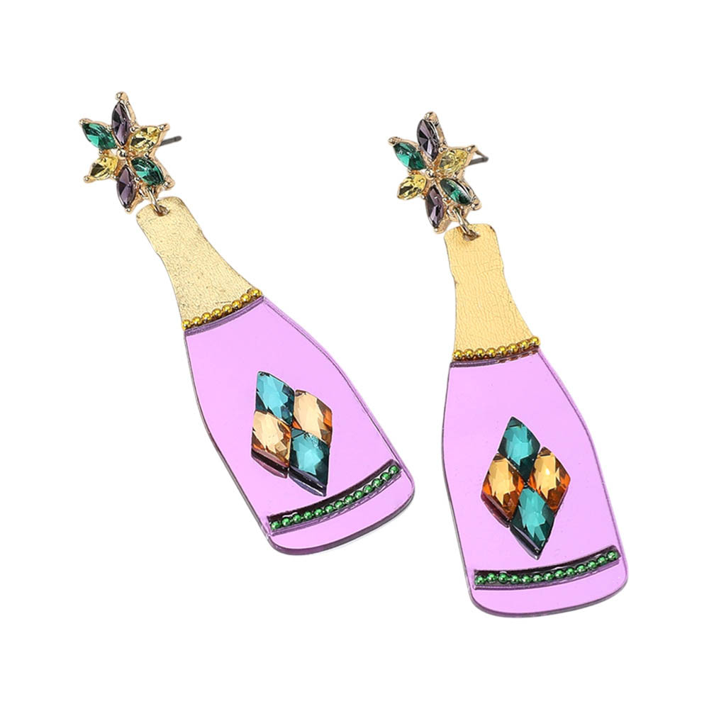 Stone Pointed Mardi Gras Champagne Bottle Dangle Earrings