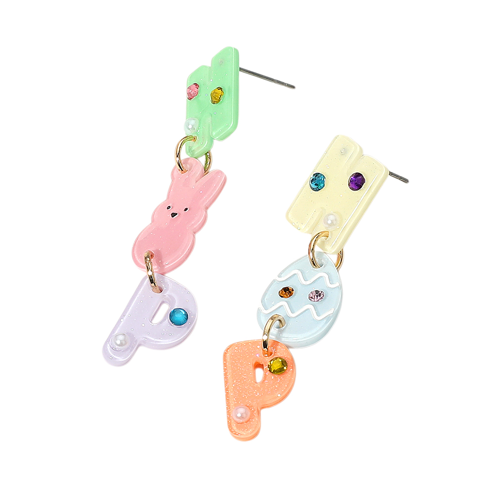 Stone Pointed Resin HIPHOP Message Link Drop Earrings