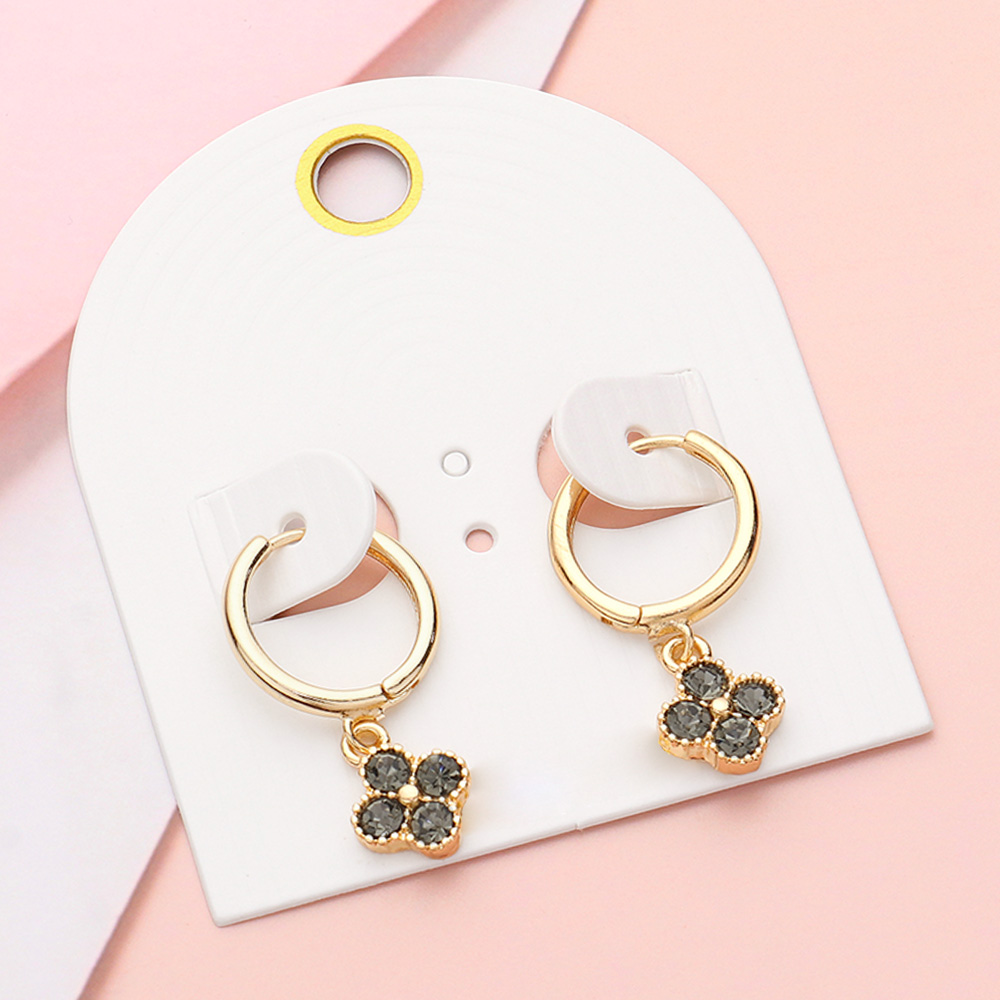 Stainless Steel Quatrefoil Stone Paved Hinged Bangle Bracelet
