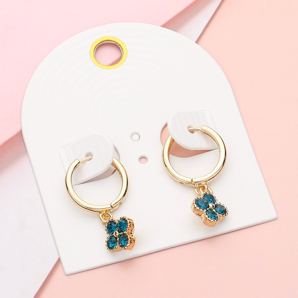 Stone Quatrefoil Dangle Huggie Earrings